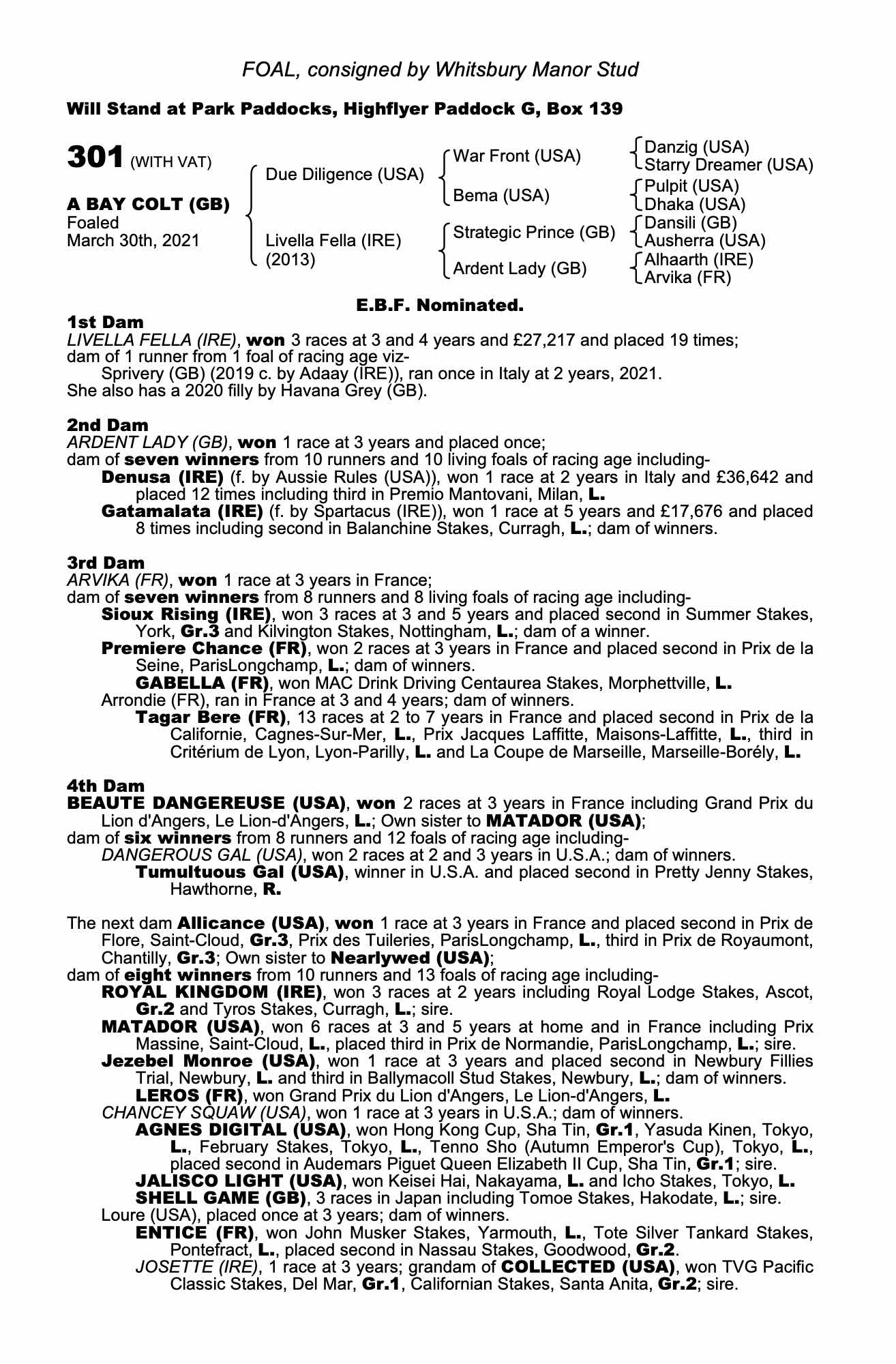 Consignor: Whitsbury Manor Stud