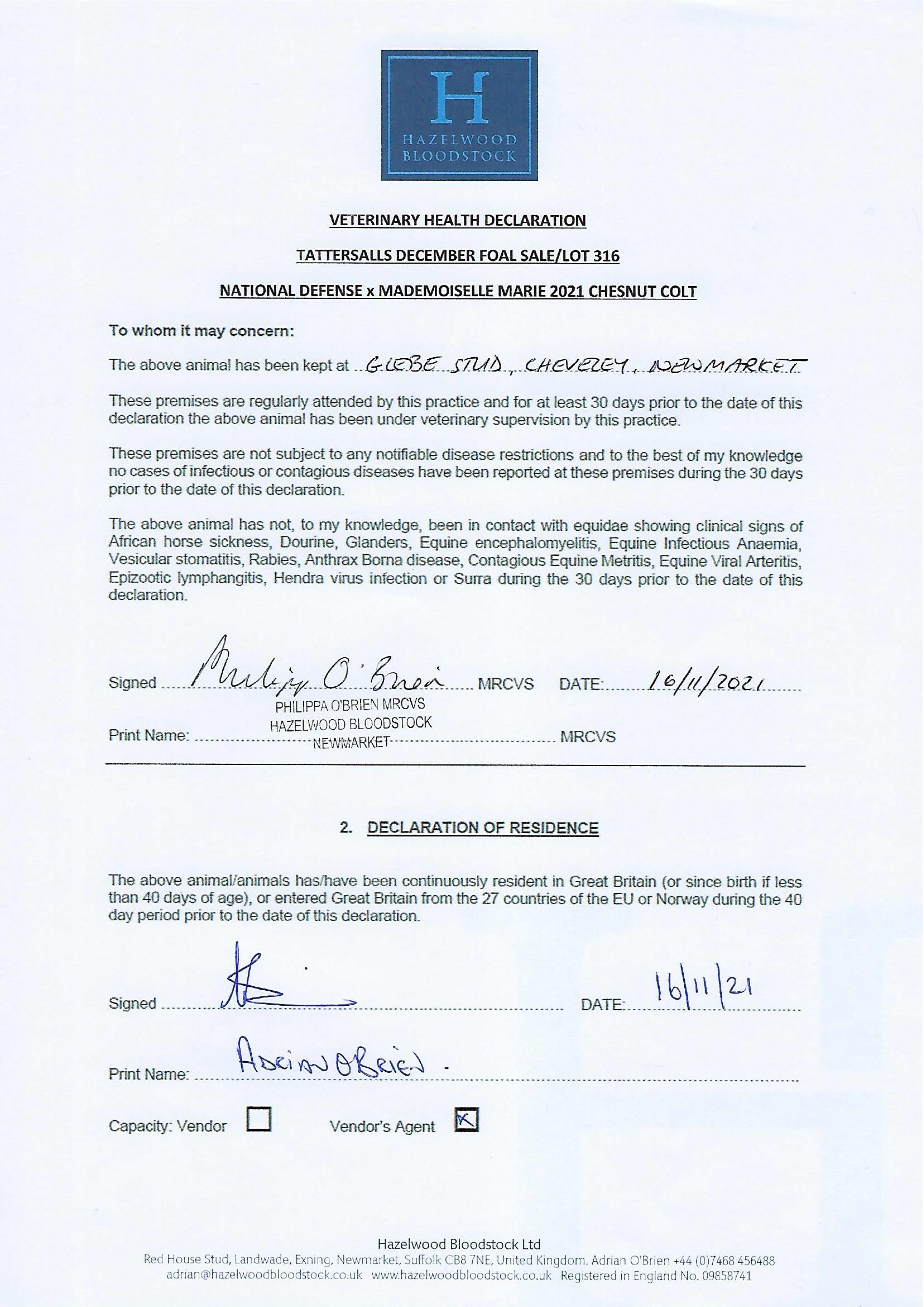 Contact: Adrian O'Brien ✆ +447468456488 ✉ adrian@hazelwoodbloodstock.co.uk