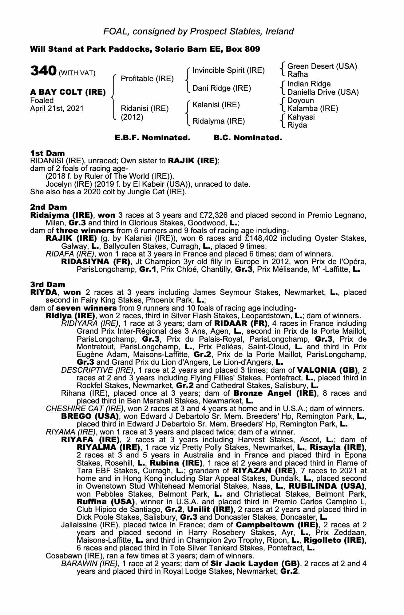Consignor: Prospect Stables, Ireland