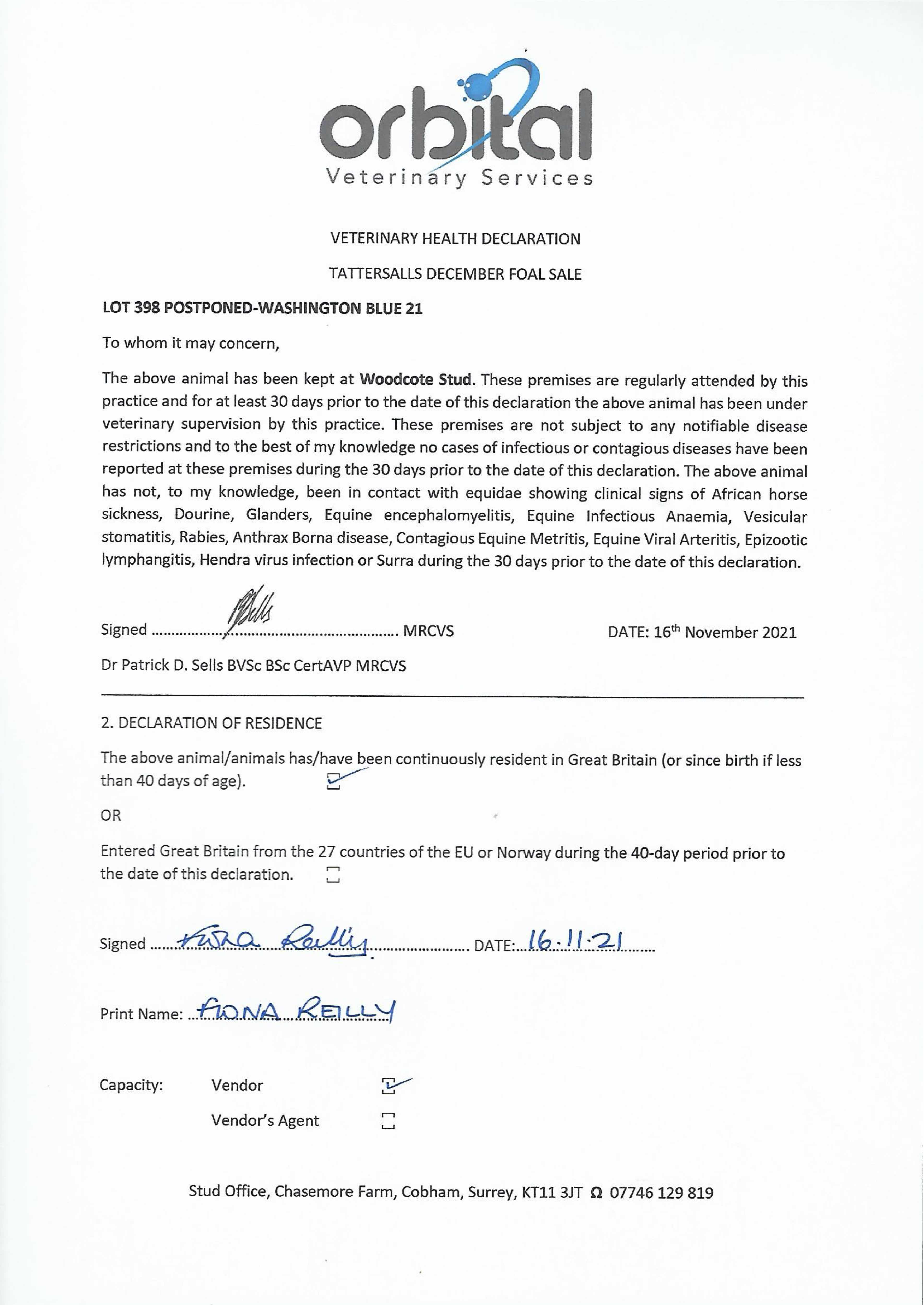 Ascot December Sale 2021 lot 11 F. by Charm Spirit (IRE) 2020, Clover Leaf Stud=>Vendor £1,000