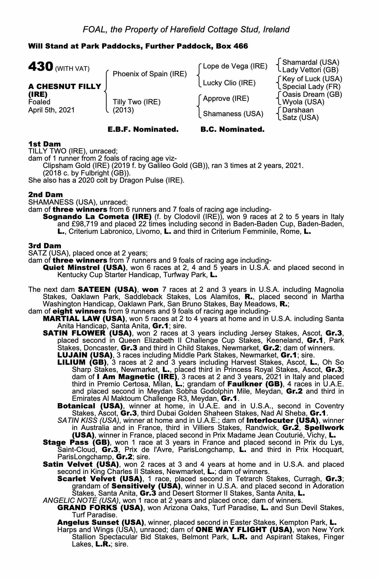 Flat Foal & Breeding Stock Sale 2019 lot 106 F. by Galileo Gold (GB) 2019, Harefield Cottage Stud=>Lot Not Sold €9,500