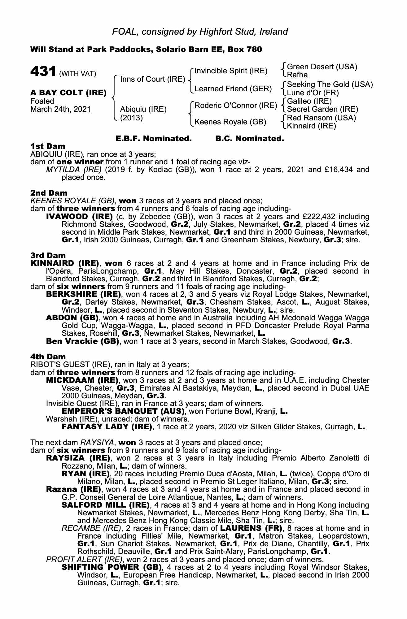 Autumn Horses In Training Sale 2024 lot 238, West Ilsley Stables (J. Channon)=>Blandford Bloodstock / Ebrahim Al-Afoo 47,000 gns