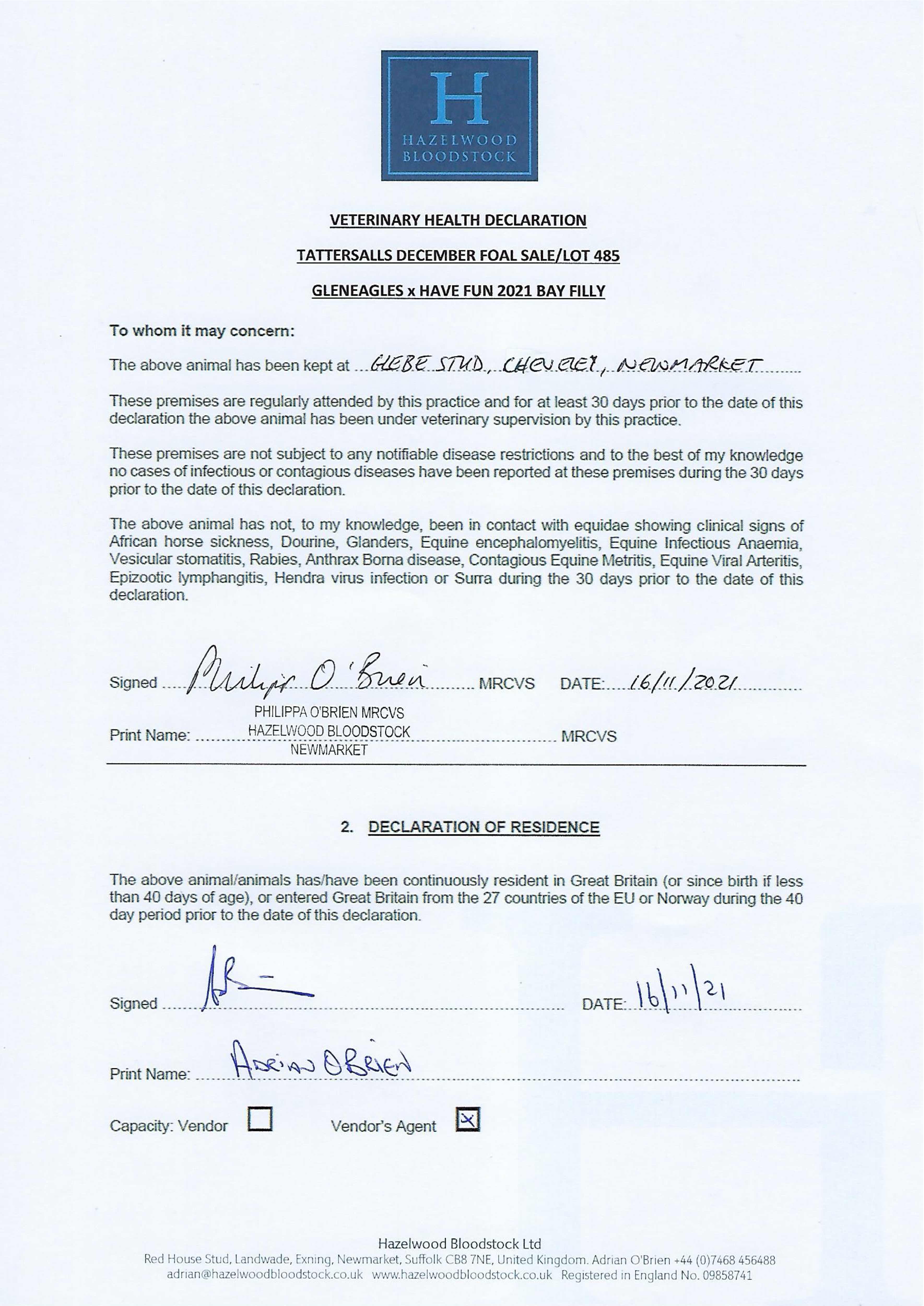Contact: Adrian O'Brien ✆ +447468456488 ✉ adrian@hazelwoodbloodstock.co.uk