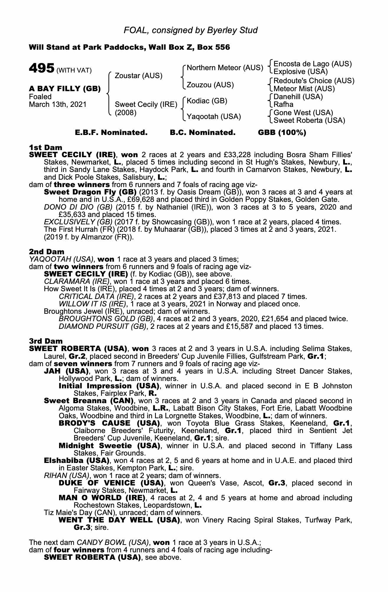 Consignor: Byerley Stud