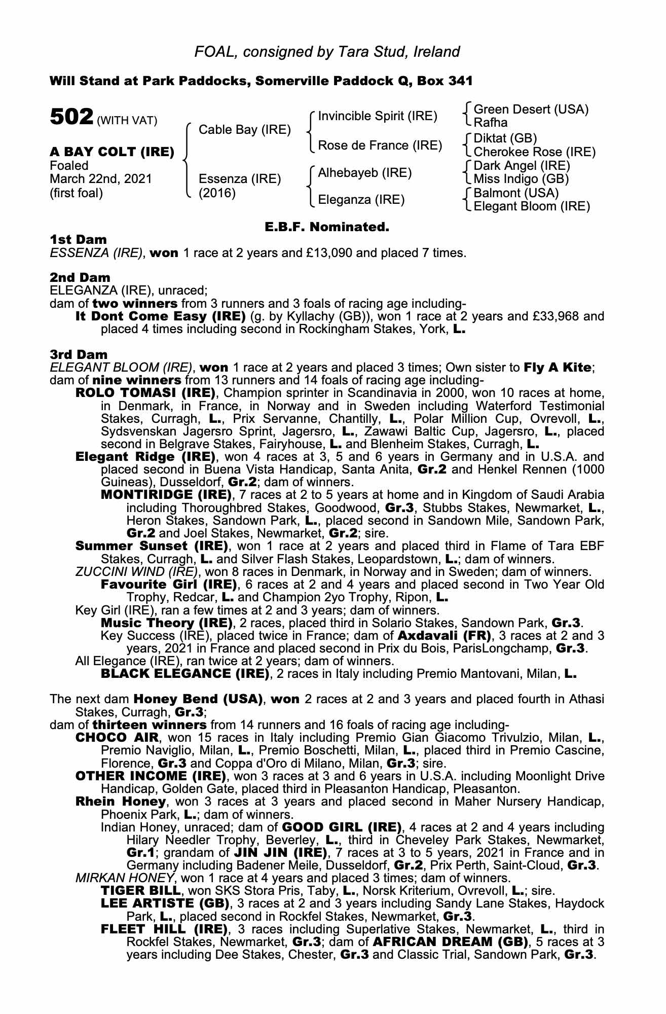 Consignor: Tara Stud, Ireland