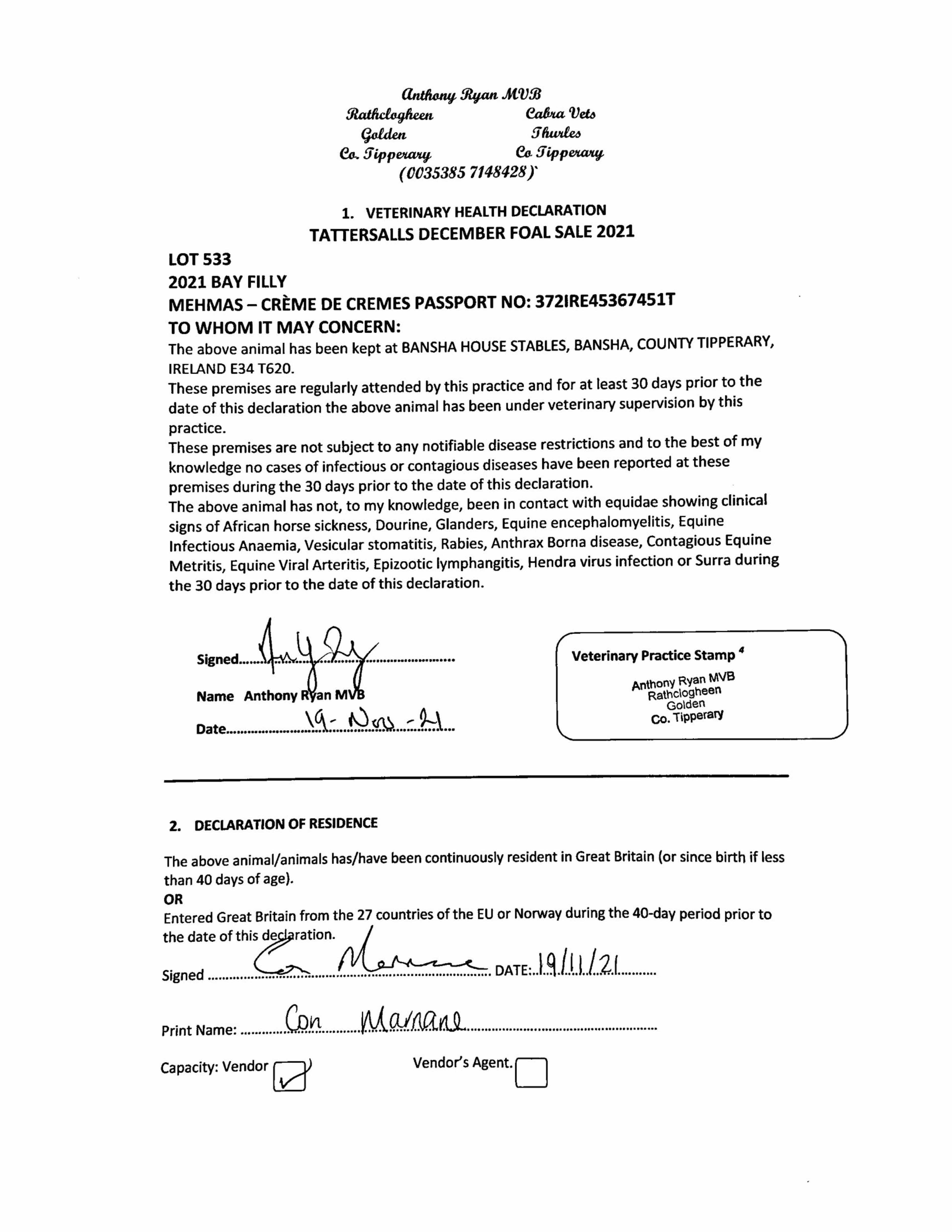 Consignor: Amy Marnane Bloodstock