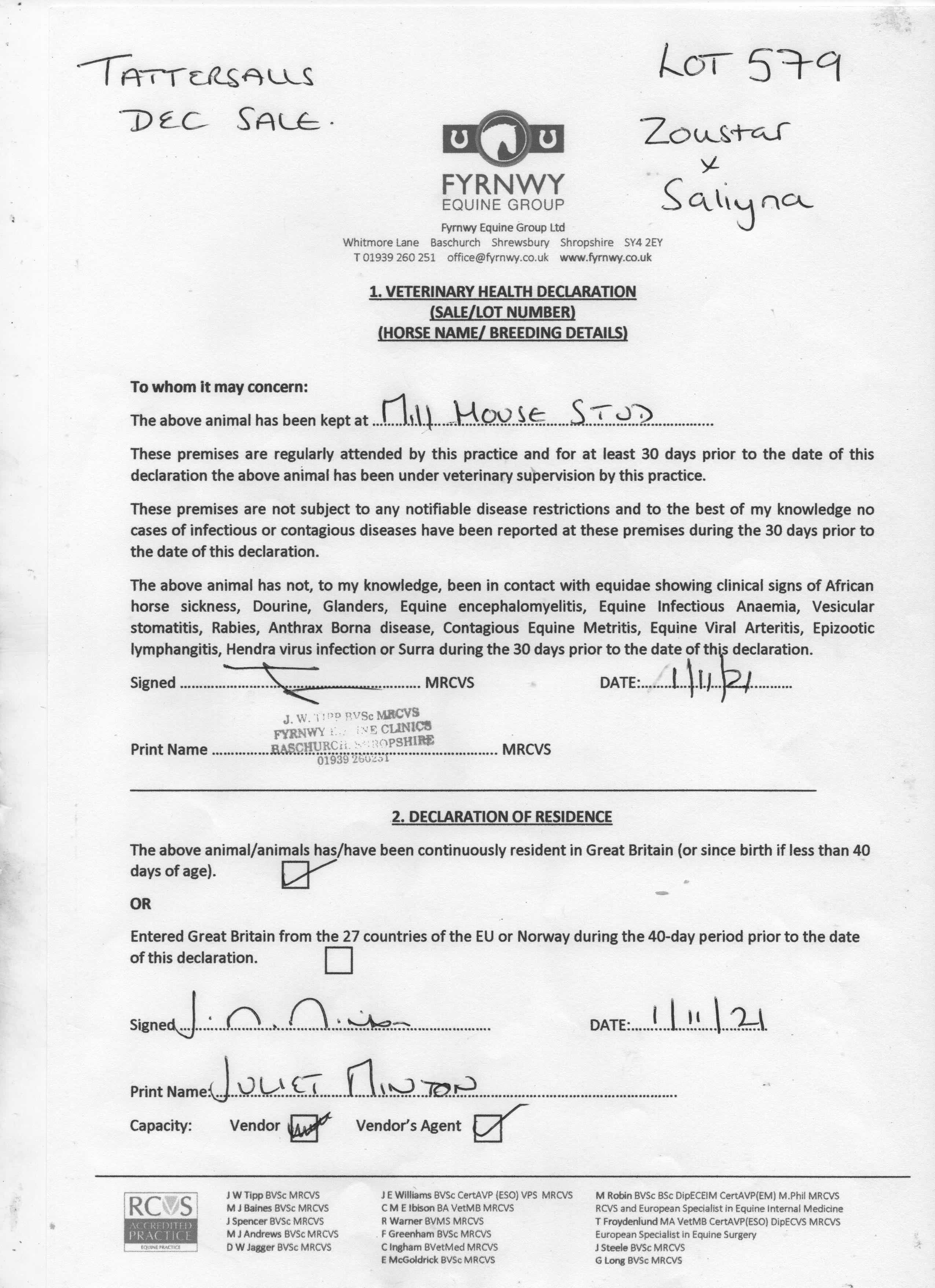 Consignor: Mill House Stud (Agent)