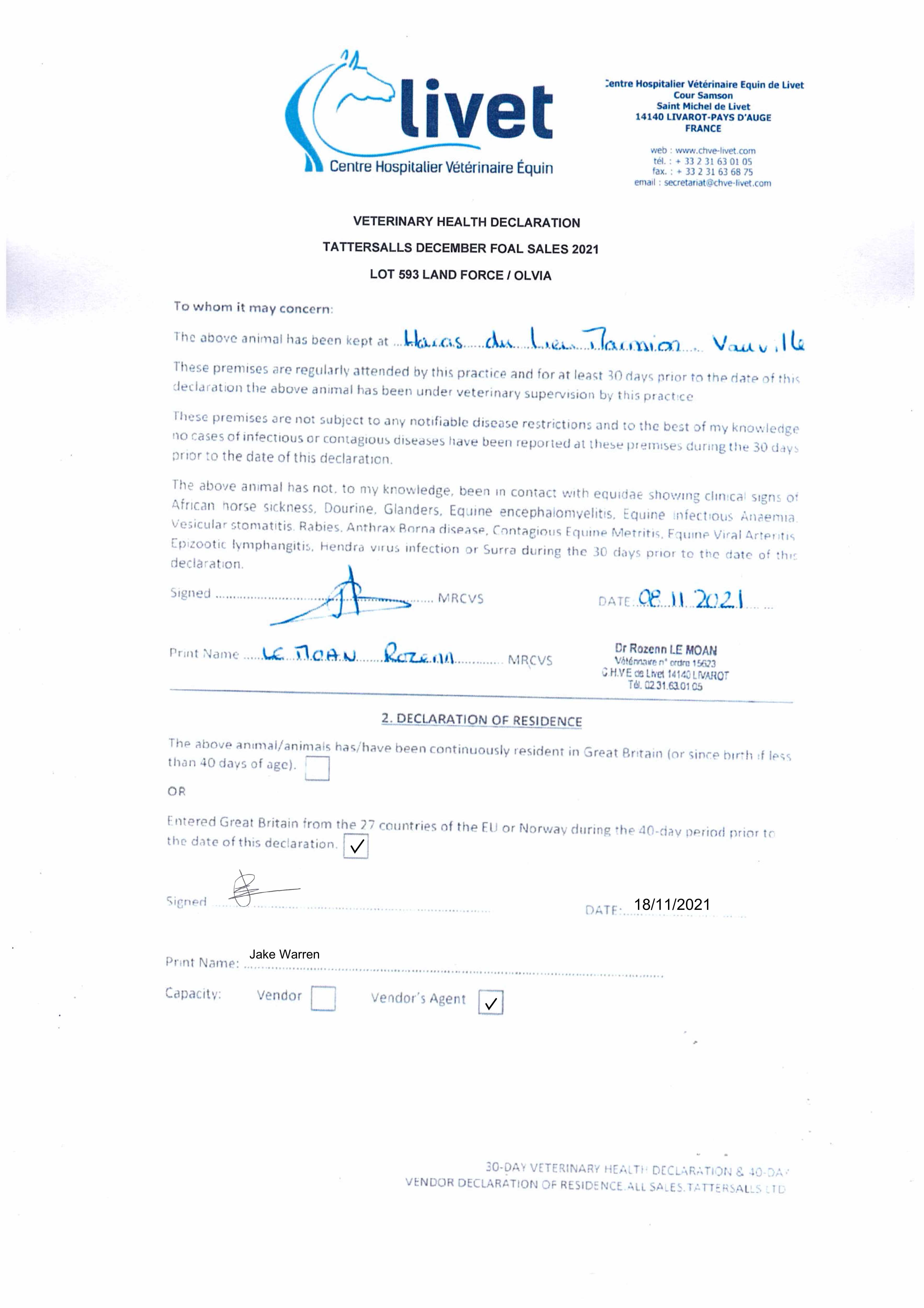 Contact: Jake Warren ✆ 07730 272895 ✉ jake@highclerestud.co.uk