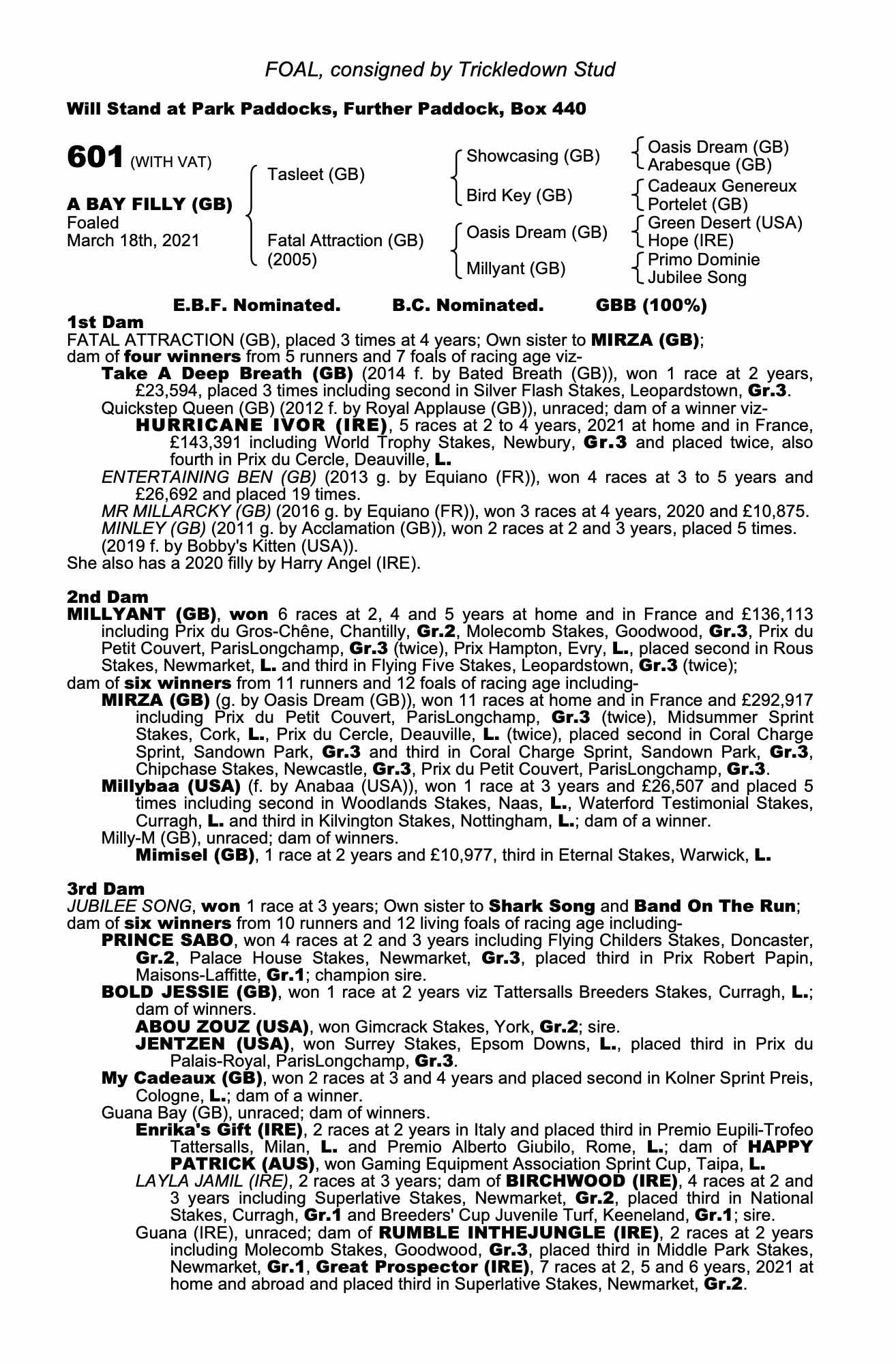 Somerville Yearling Sale 2021 lot 270 F. by Harry Angel (IRE) 2020, Elkington Stud=>Vendor 28,000 gns