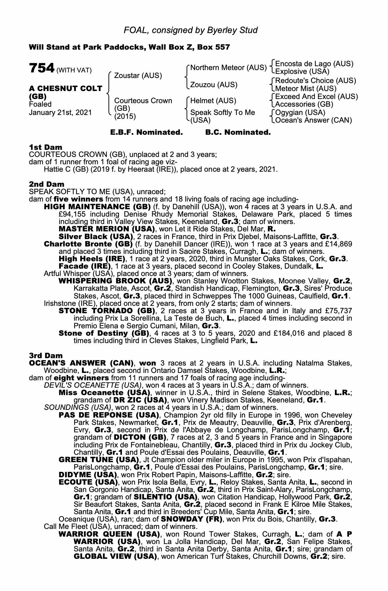 Consignor: Byerley Stud