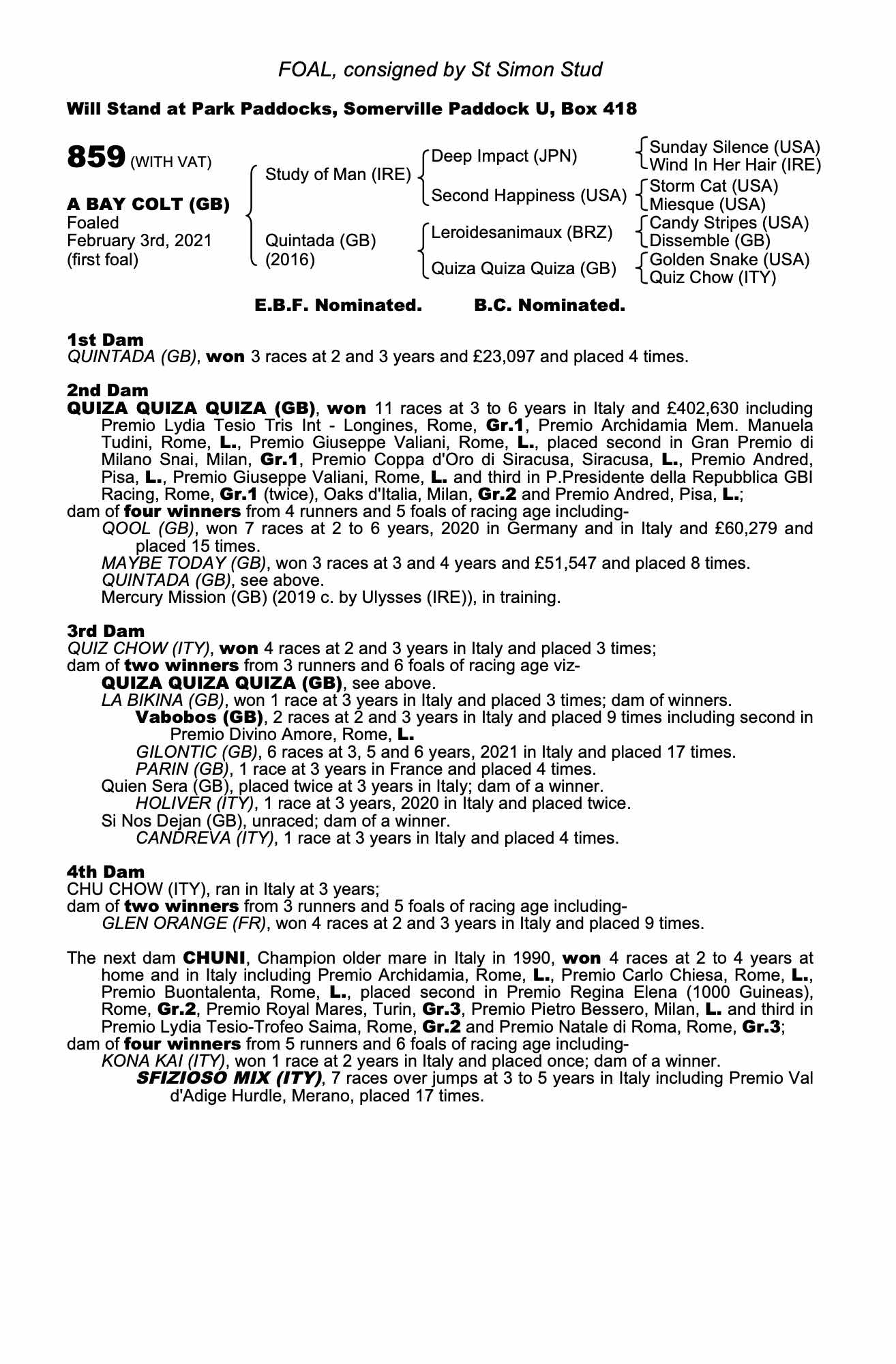 Consignor: St Simon Stud