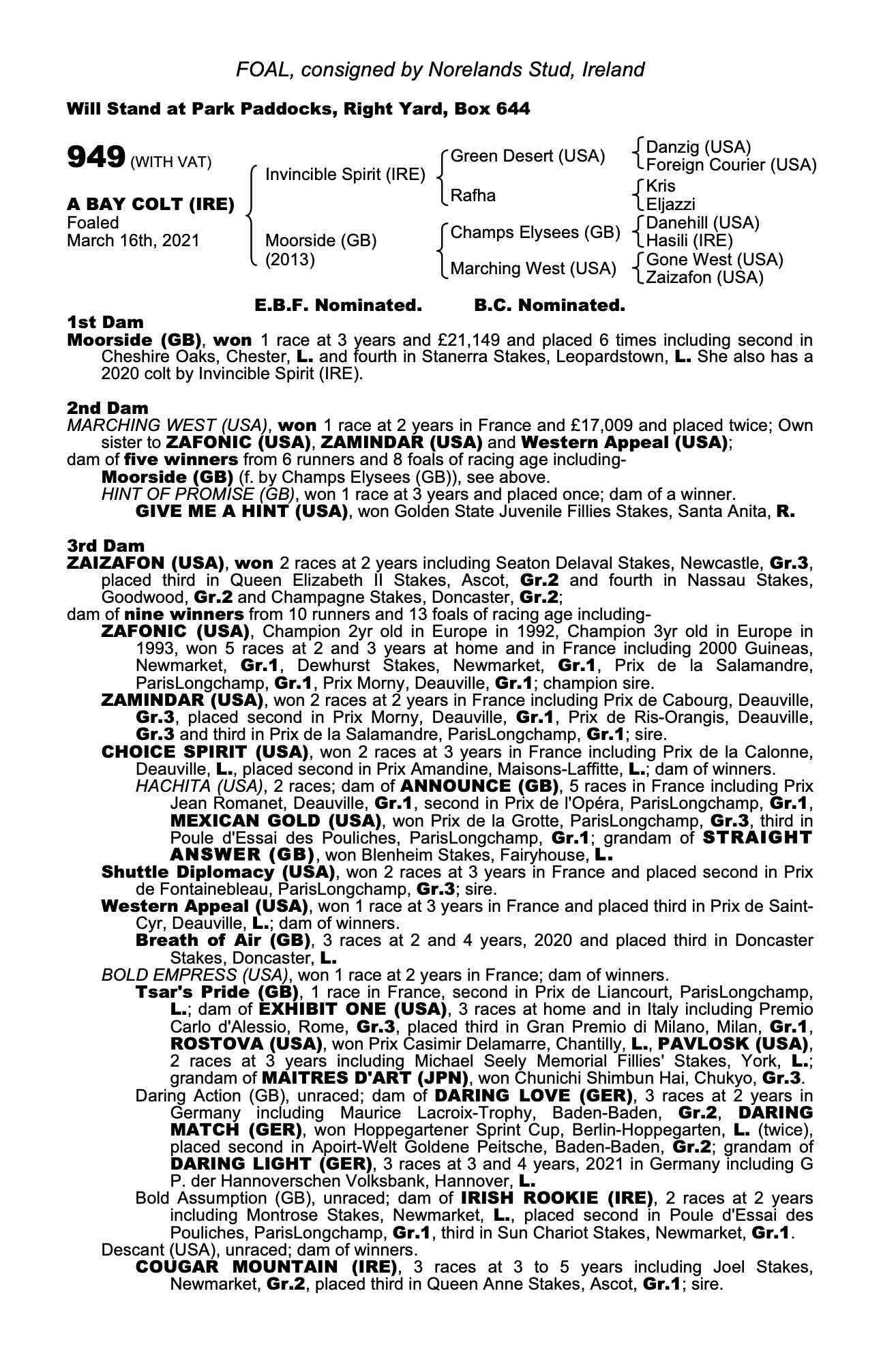 Invincible Spirit (IRE) / Moorside (GB) B.C. (IRE)