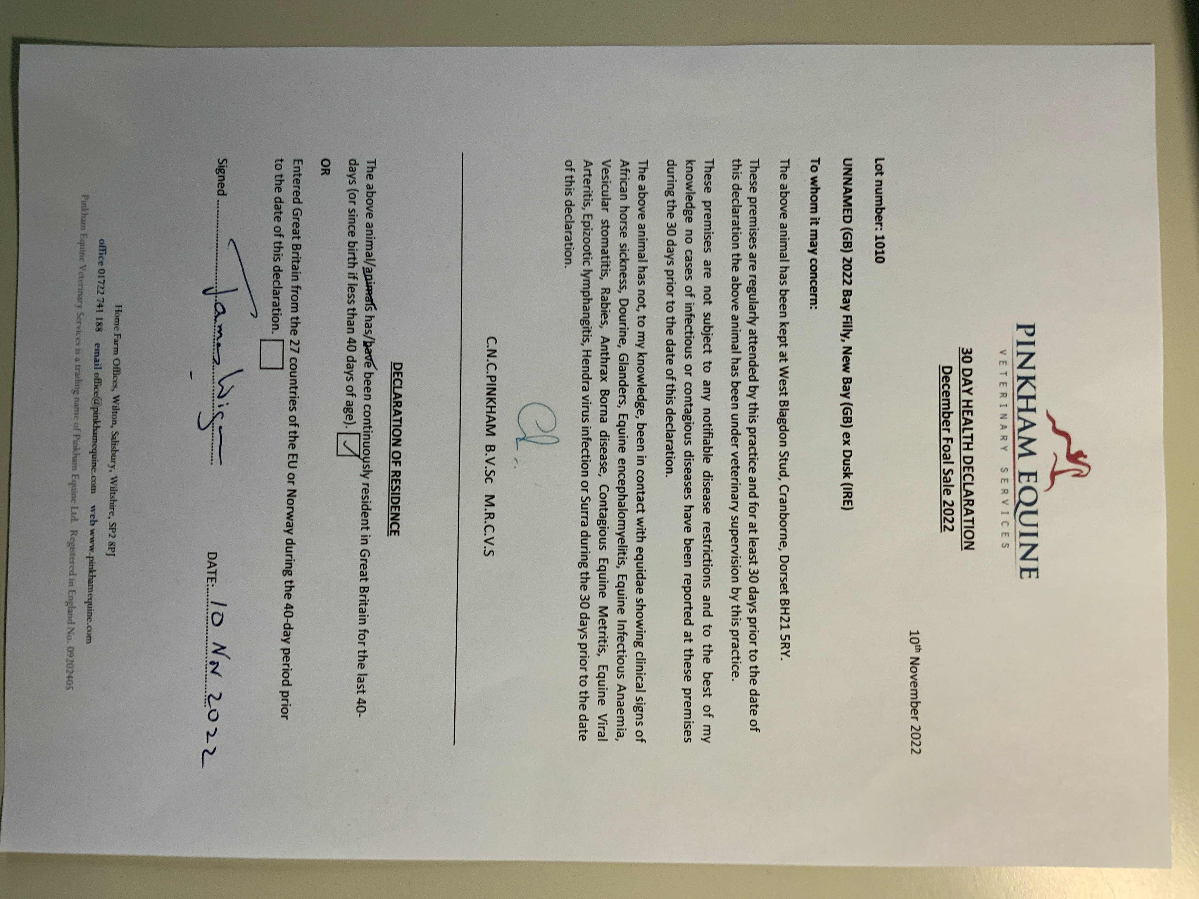 Online Sale - 8th May 2025 lot 64, Jamesfield Stables (J. Tate)=>Kilbride Equine 13,000 gns