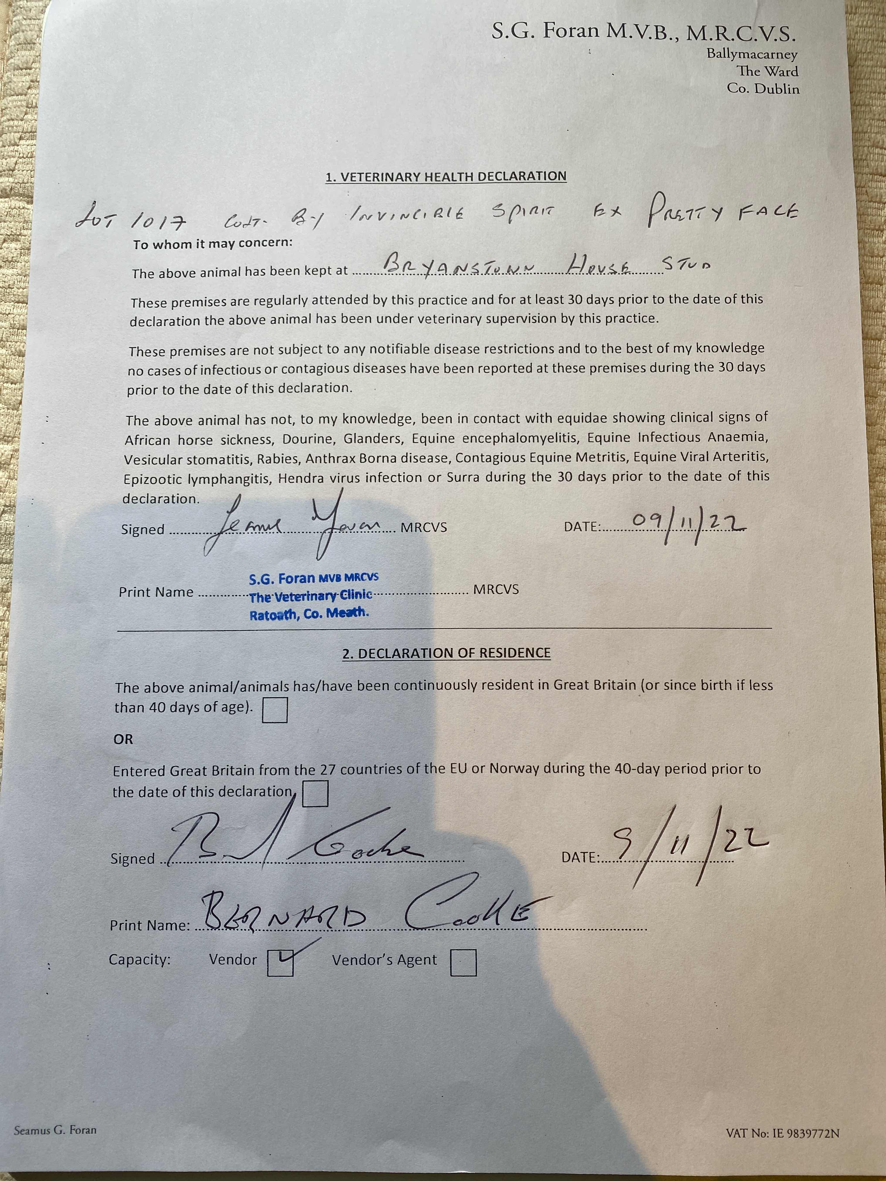 Consignor: Bryanstown House Stud, Ireland