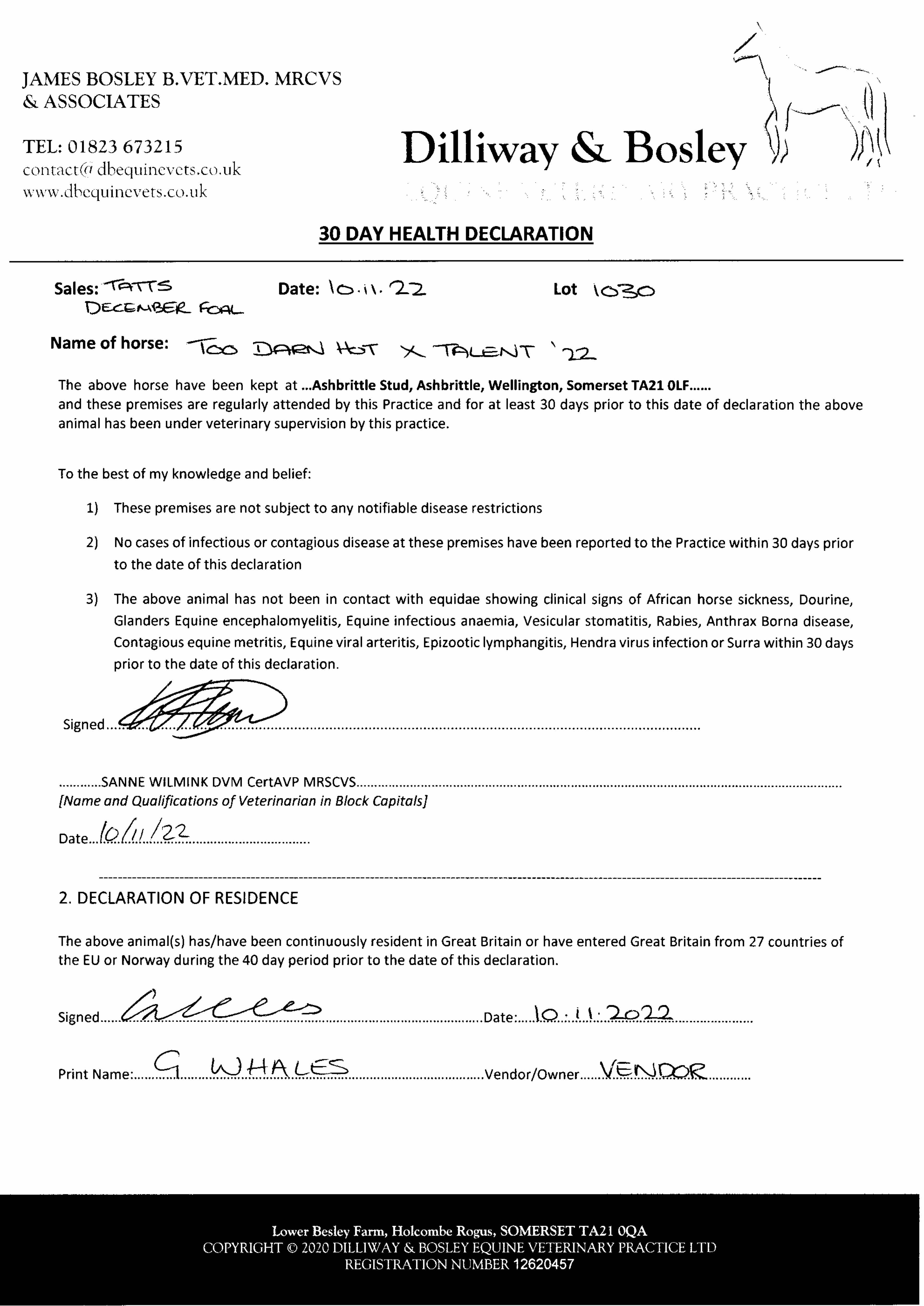 Consignor: Ashbrittle Stud