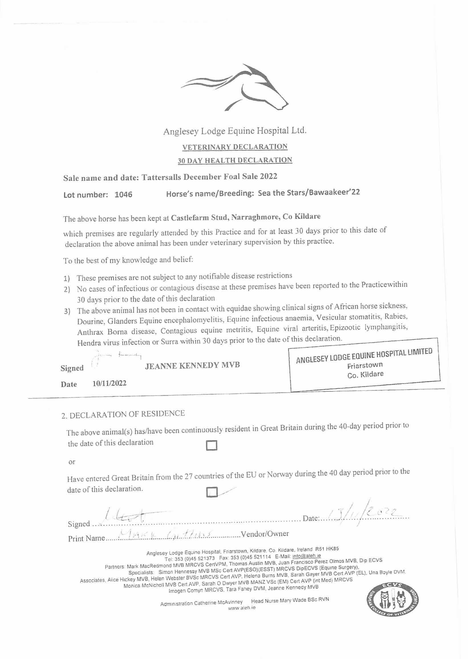 Consignor: Castlefarm Stud, Ireland (Agent)