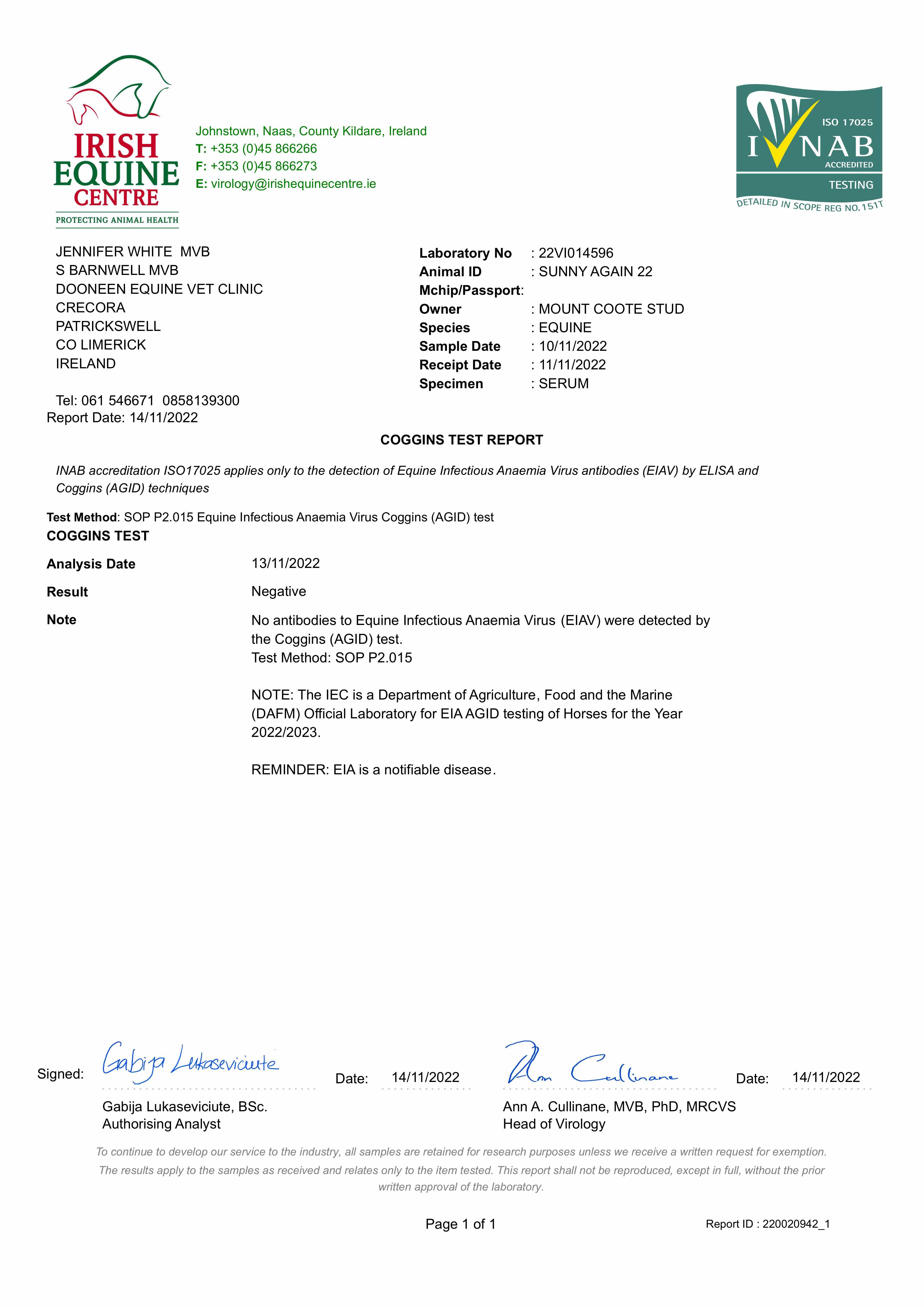 Consignor: Mount Coote Stud, Ireland