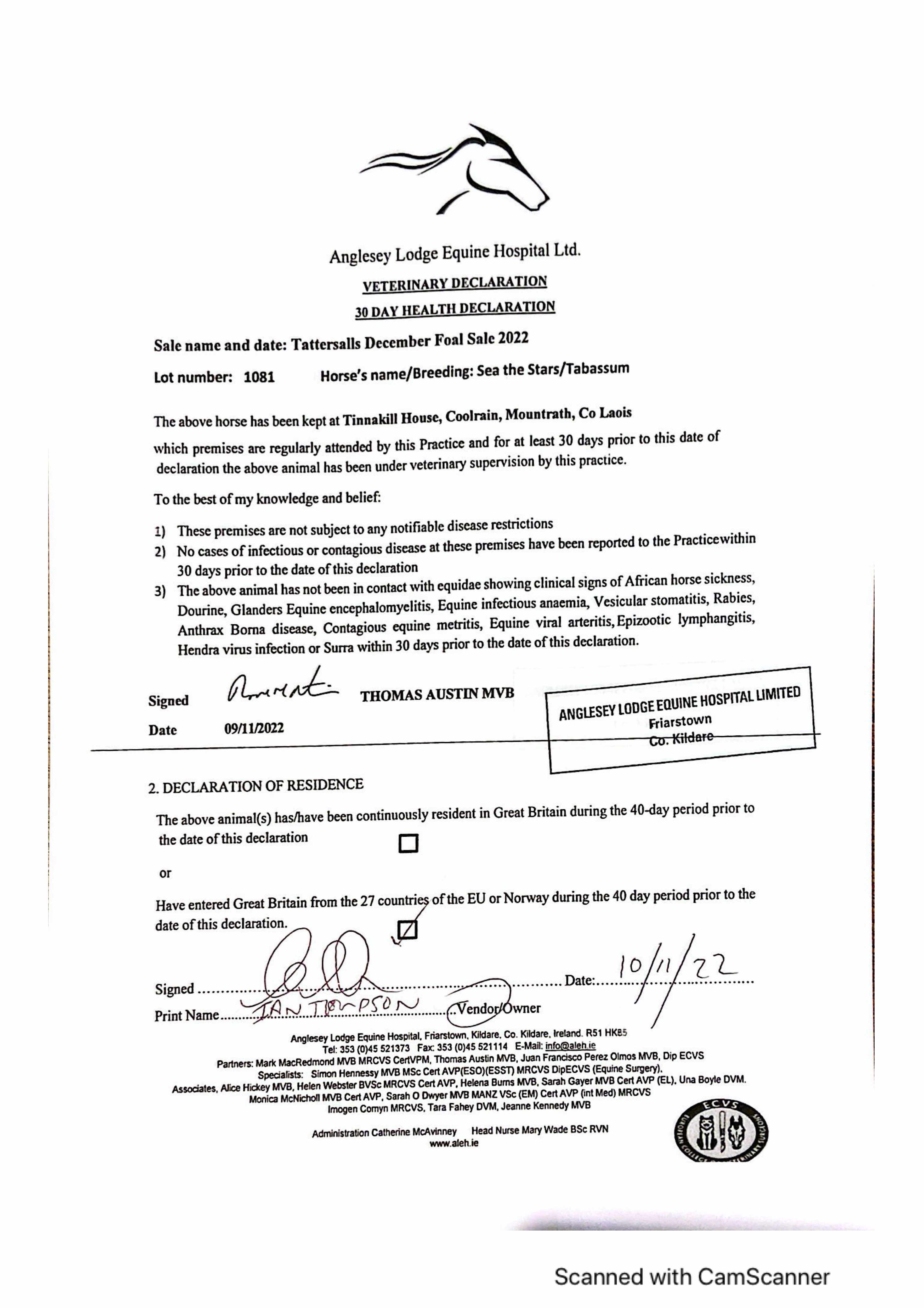 Consignor: Tinnakill House, Ireland