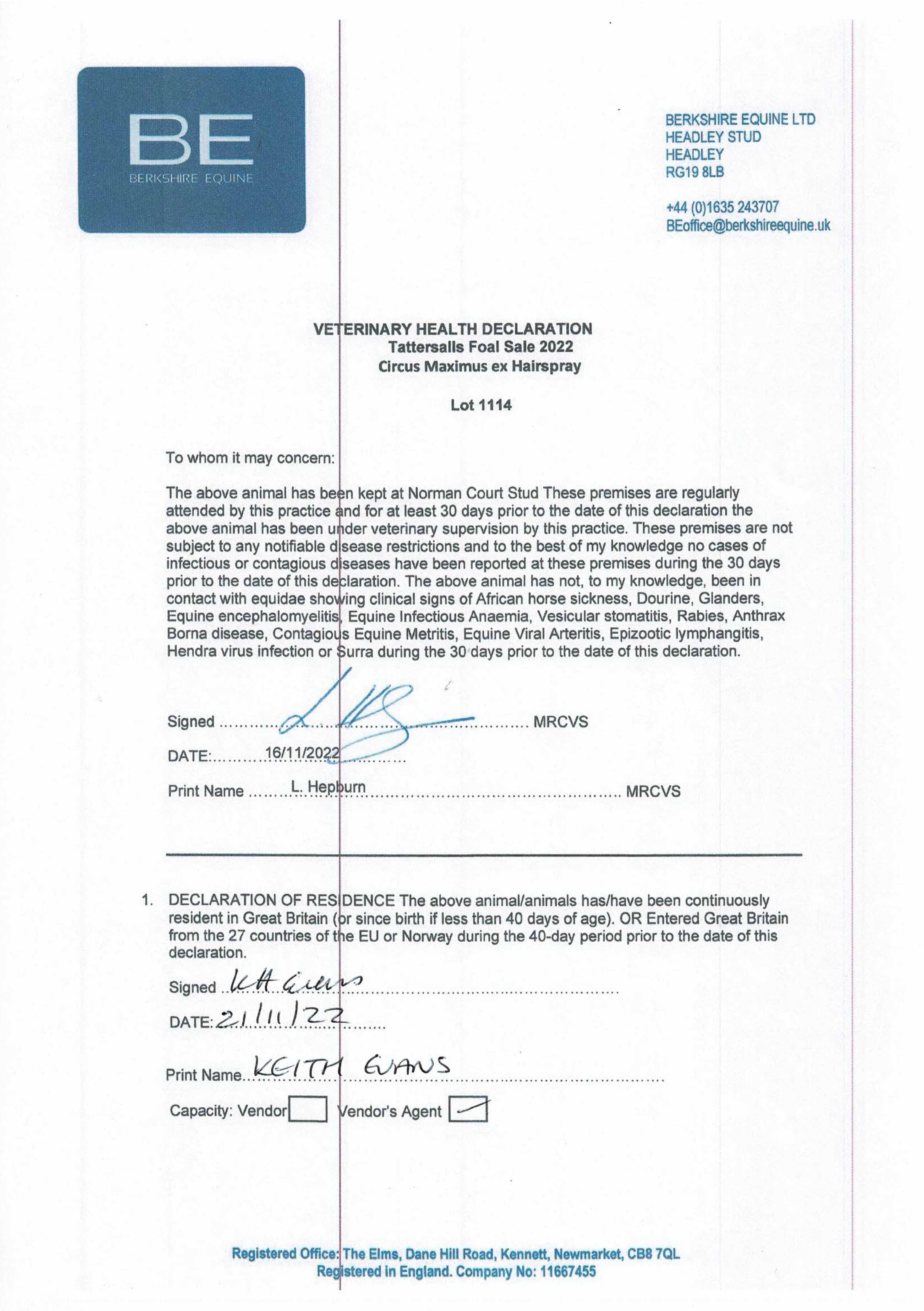 Consignor: Norman Court Stud