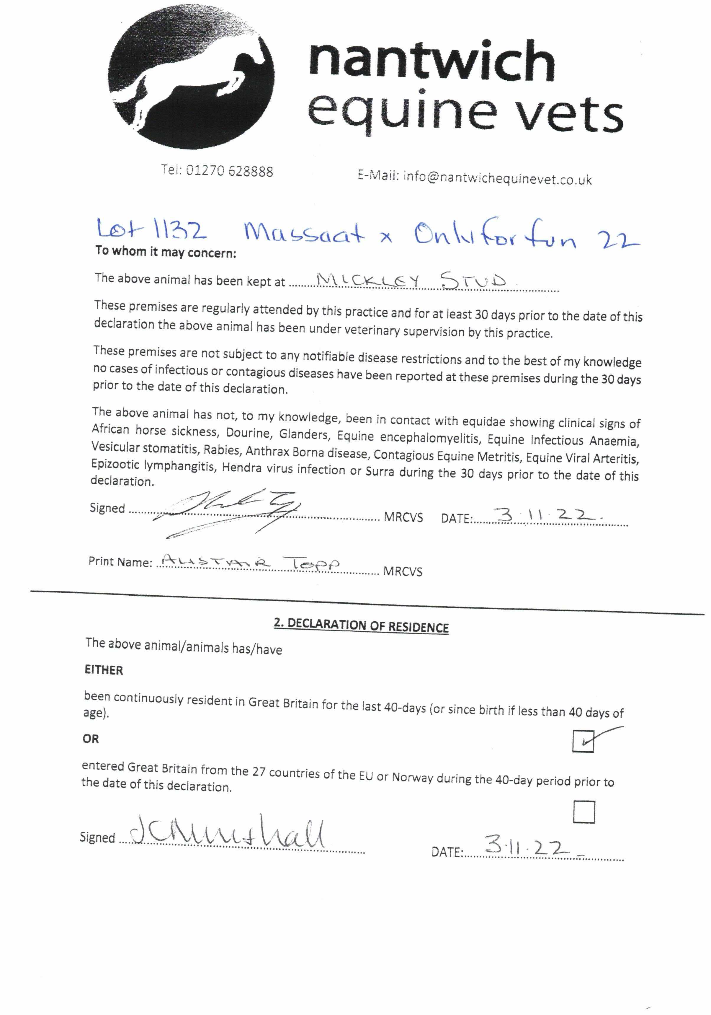 Consignor: Mickley Stud Ltd.
