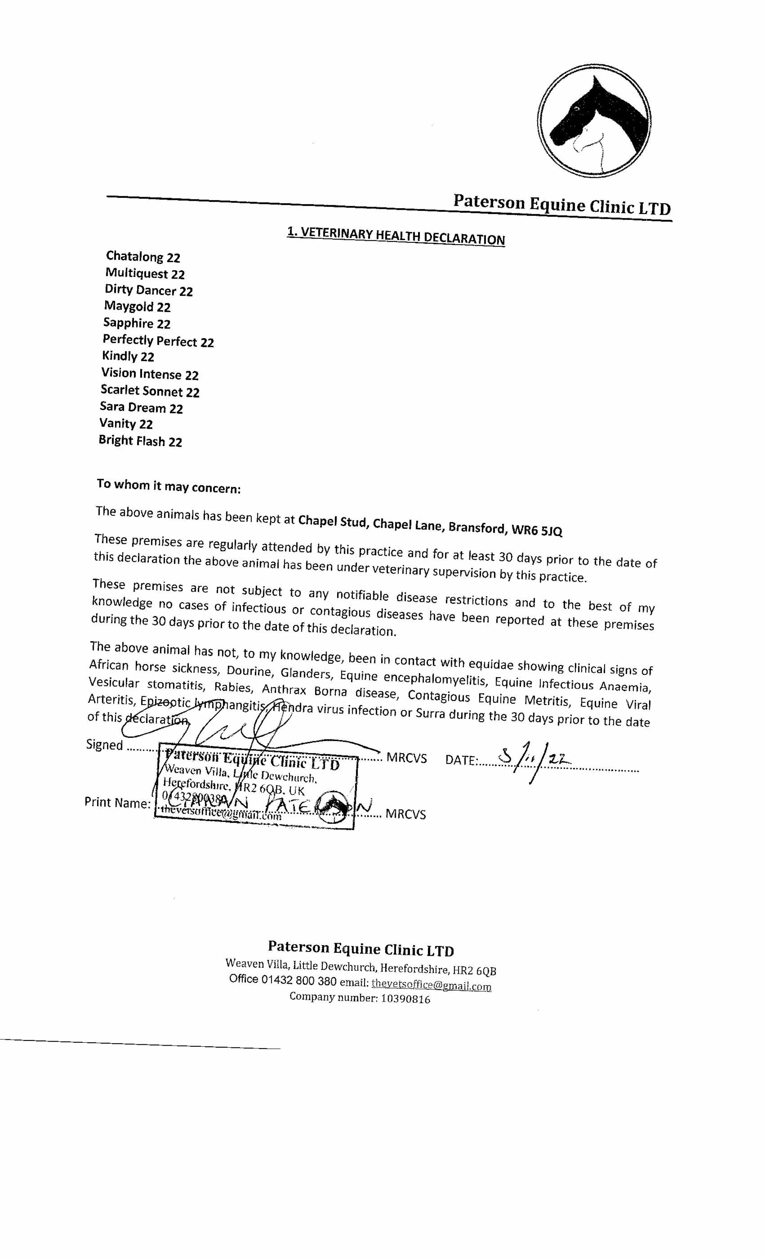 December Foal Sale 2024 lot 267 F. by Caturra (IRE) 2024, Chapel Stud=>Lot Not Sold 2,800 gns