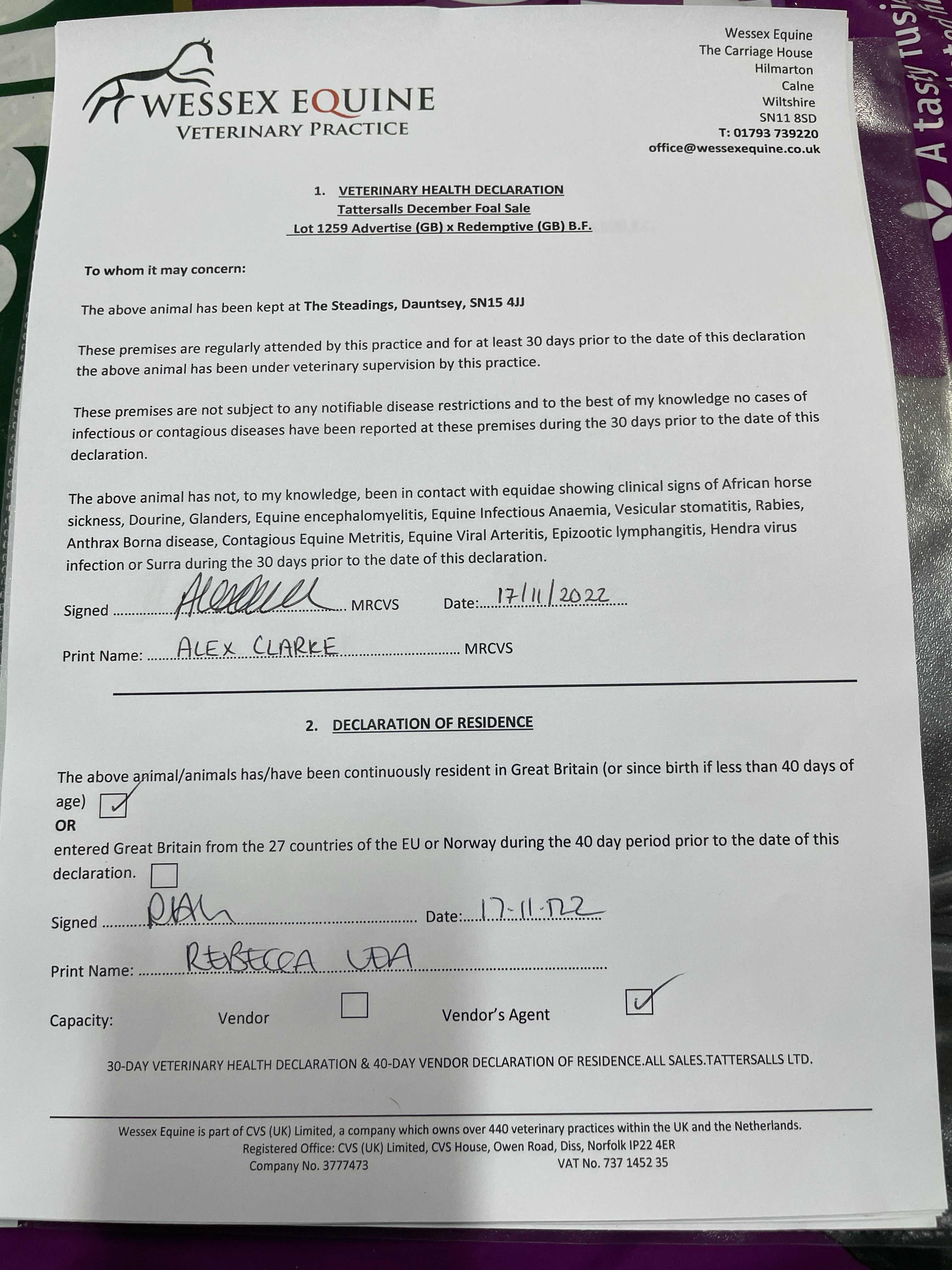 December Foal Sale 2024 lot 1203 F. by A'Ali (IRE) 2024, Whitwell Bloodstock (Agent)=>Michael Marsh 4,000 gns