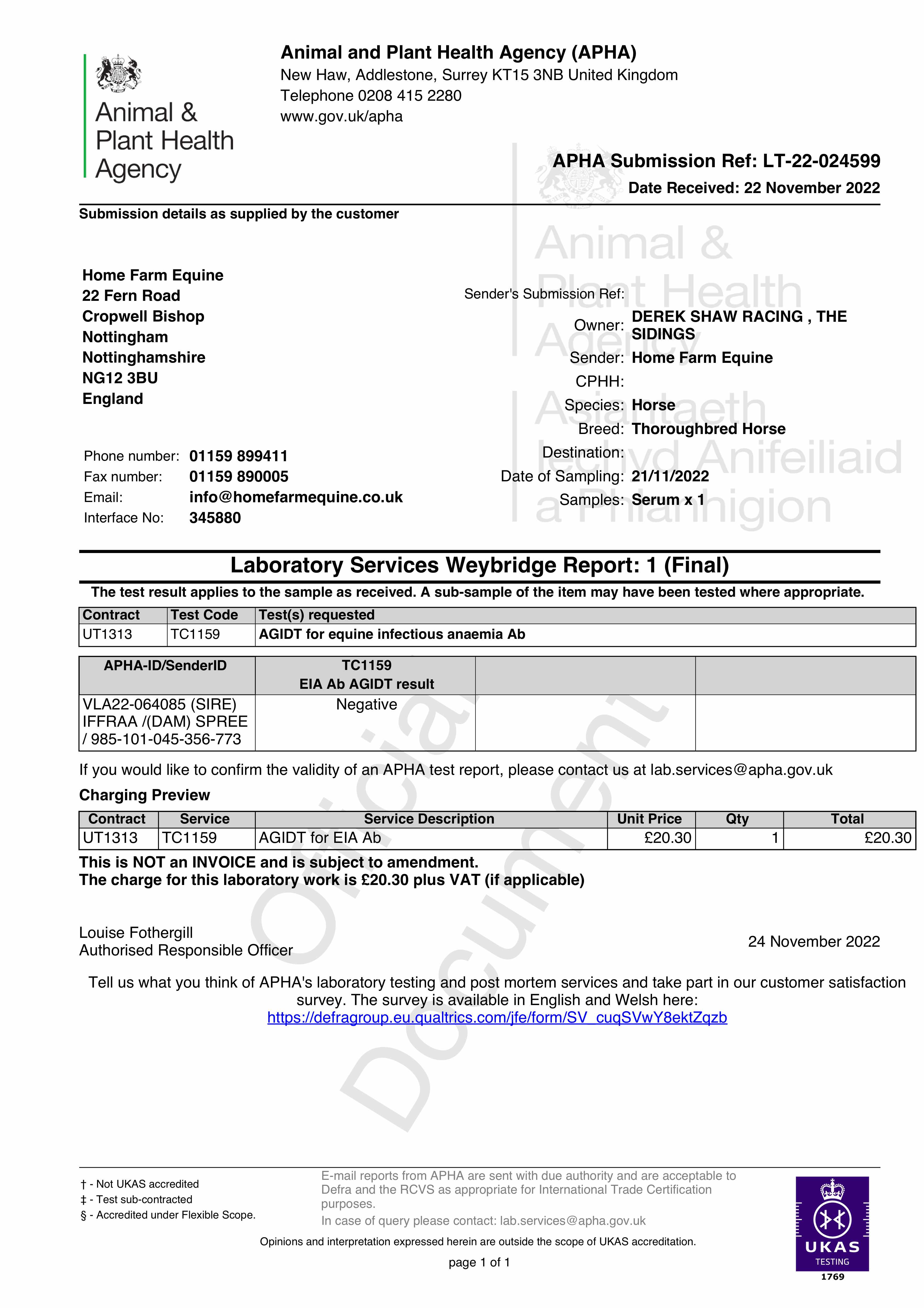 Consignor: L. Shaw