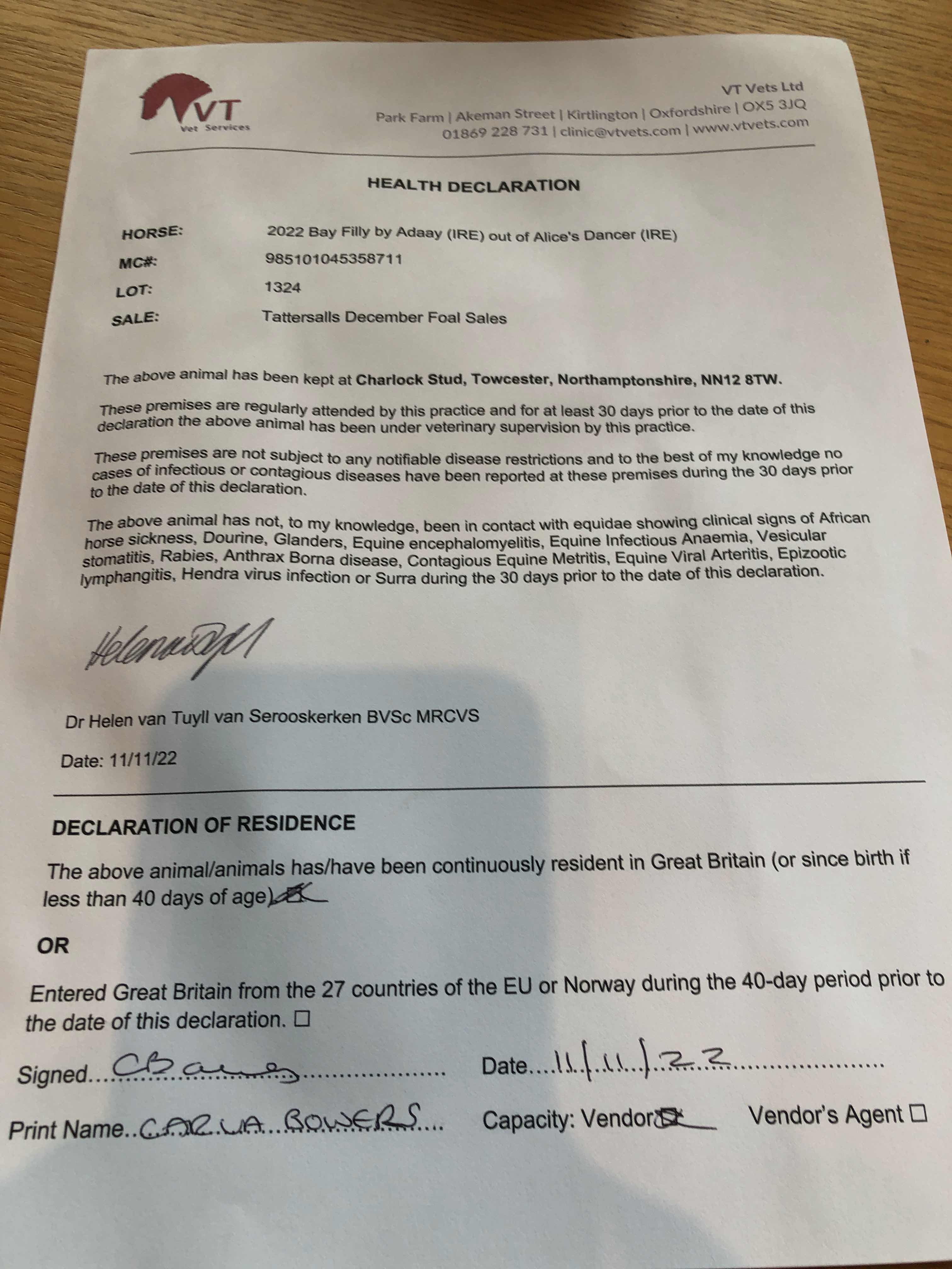 Consignor: Charlock Stud