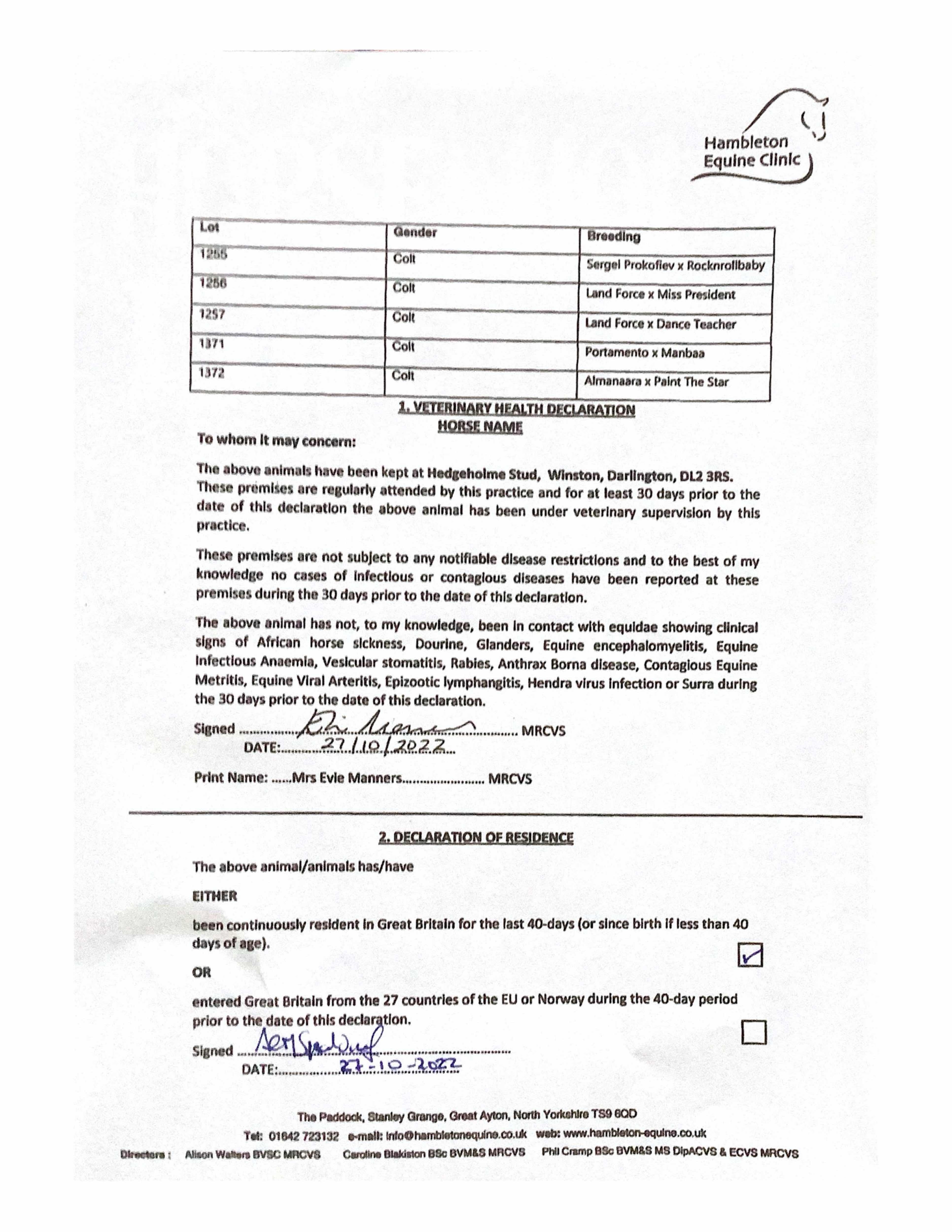 December Foal Sale 2024 lot 1197 F. by Land Force (IRE) 2024, Hedgeholme Stud=>R Popely 1,000 gns