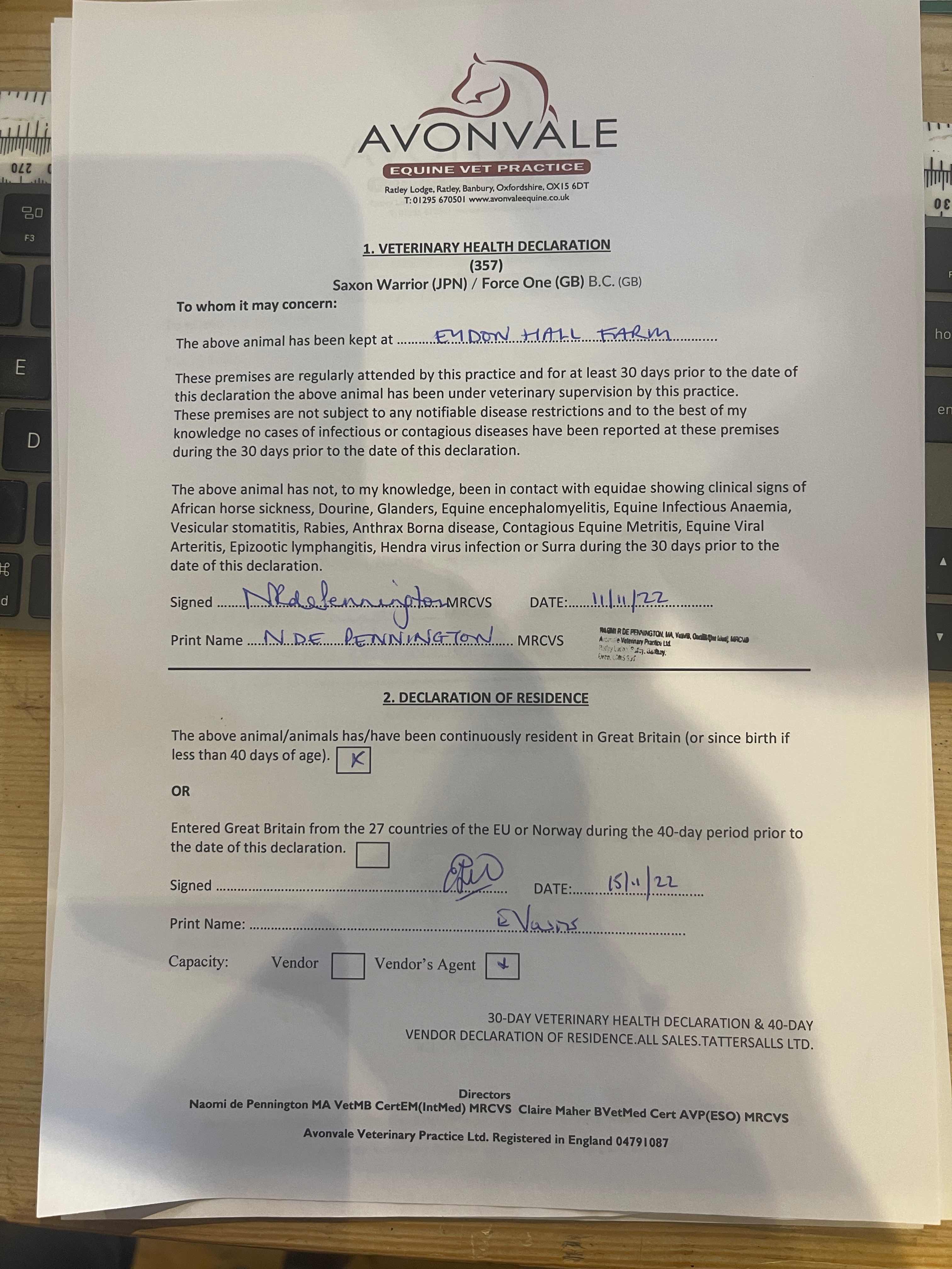 Consignor: Voute Sales Ltd. (Agent)
