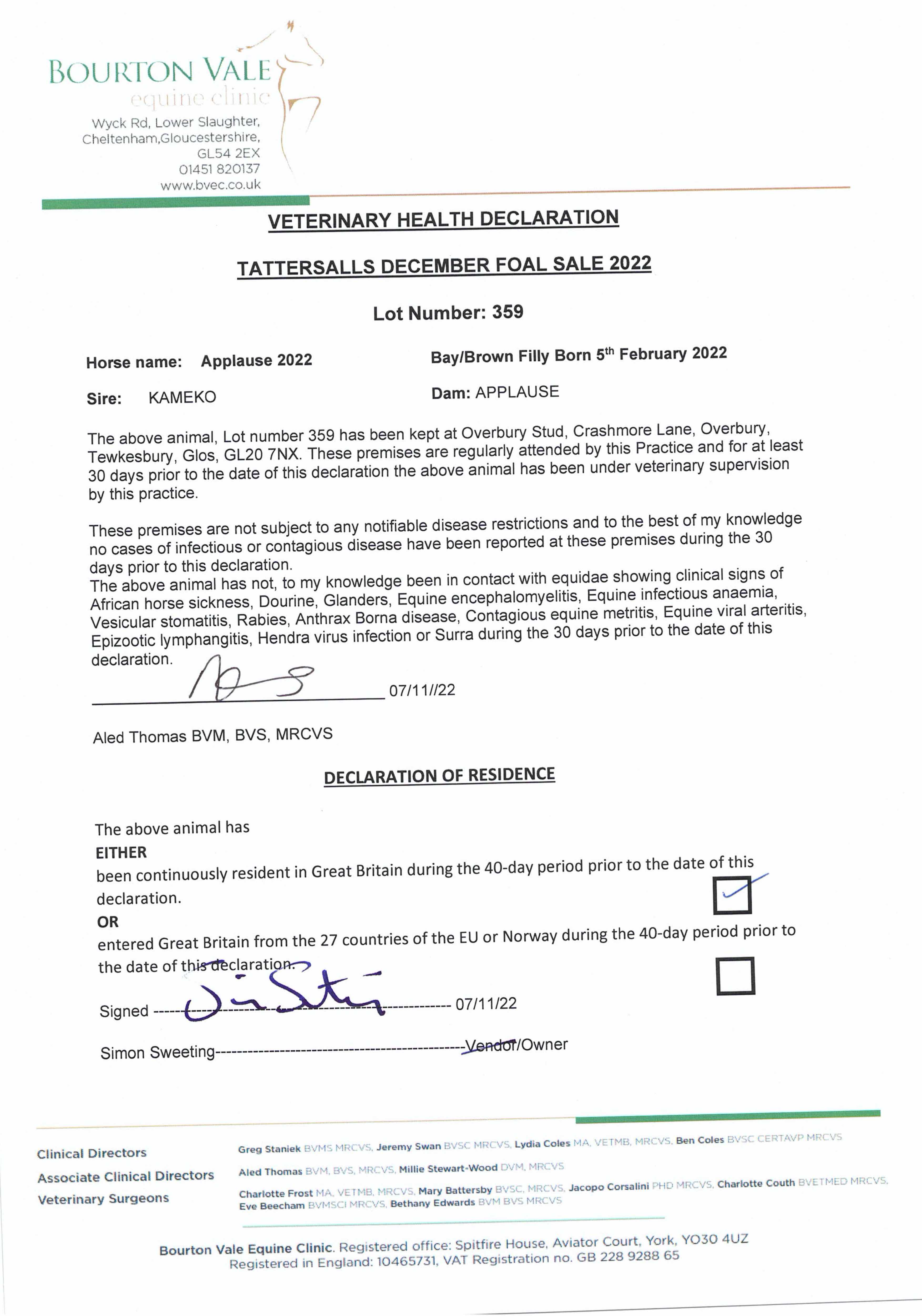 Consignor: Overbury Stud