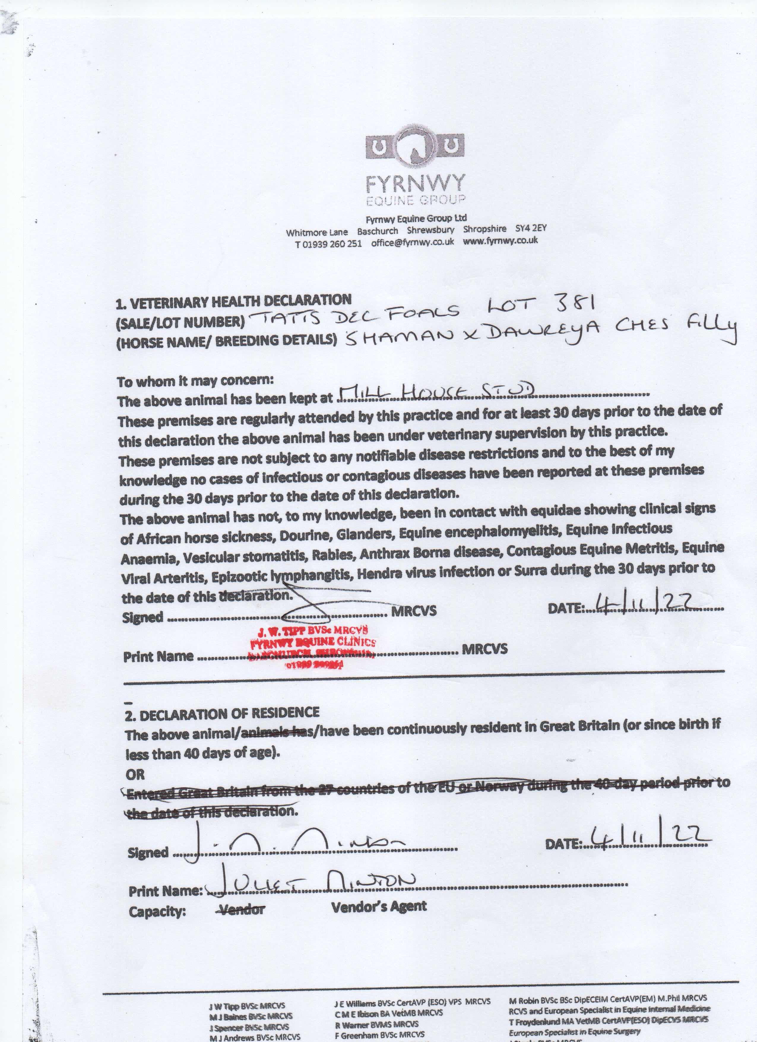 Consignor: Mill House Stud (Agent)