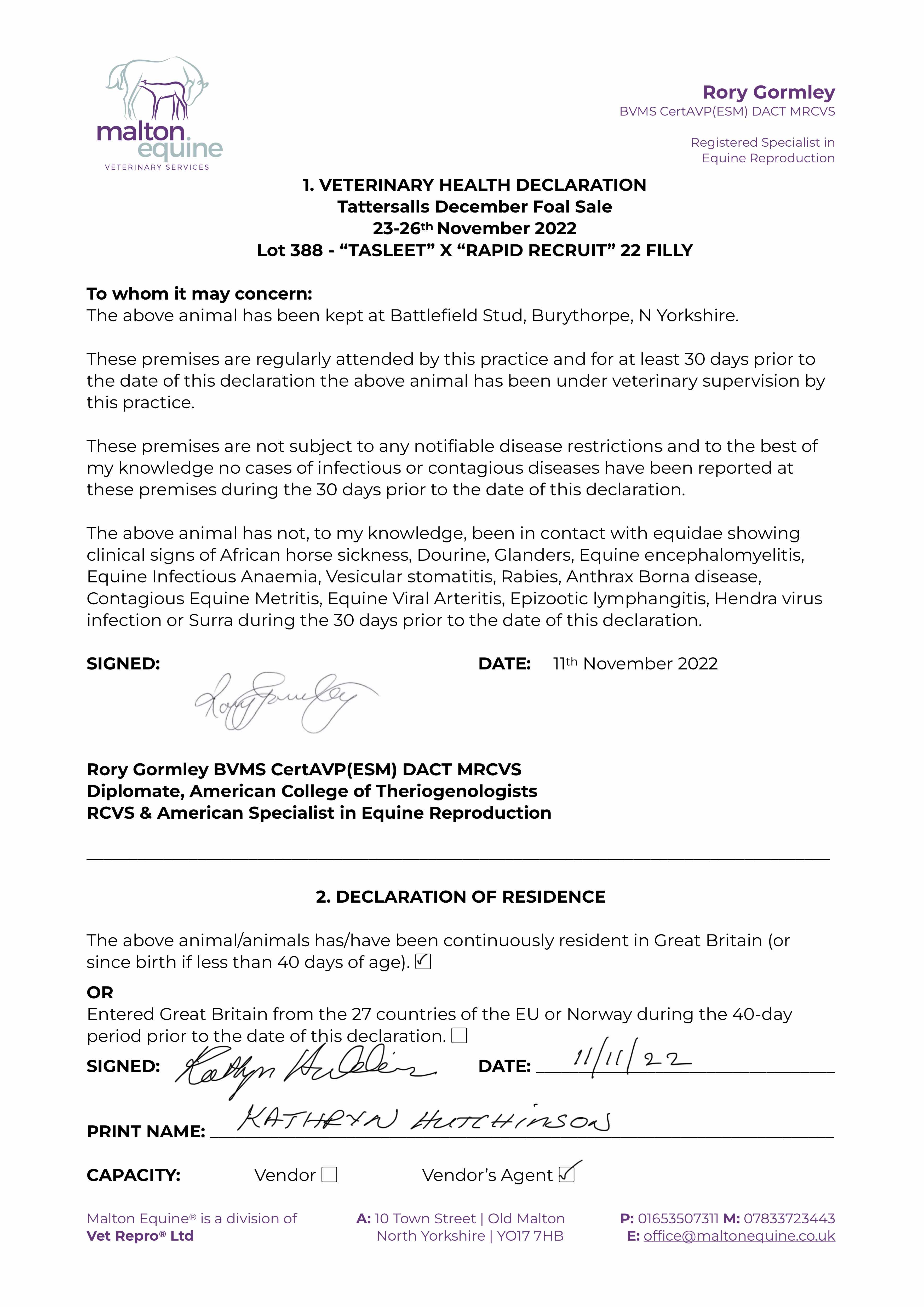 December Foal Sale 2018 lot 429 F. by Bated Breath (GB) 2018, Trickledown Stud=>Lot Not Sold