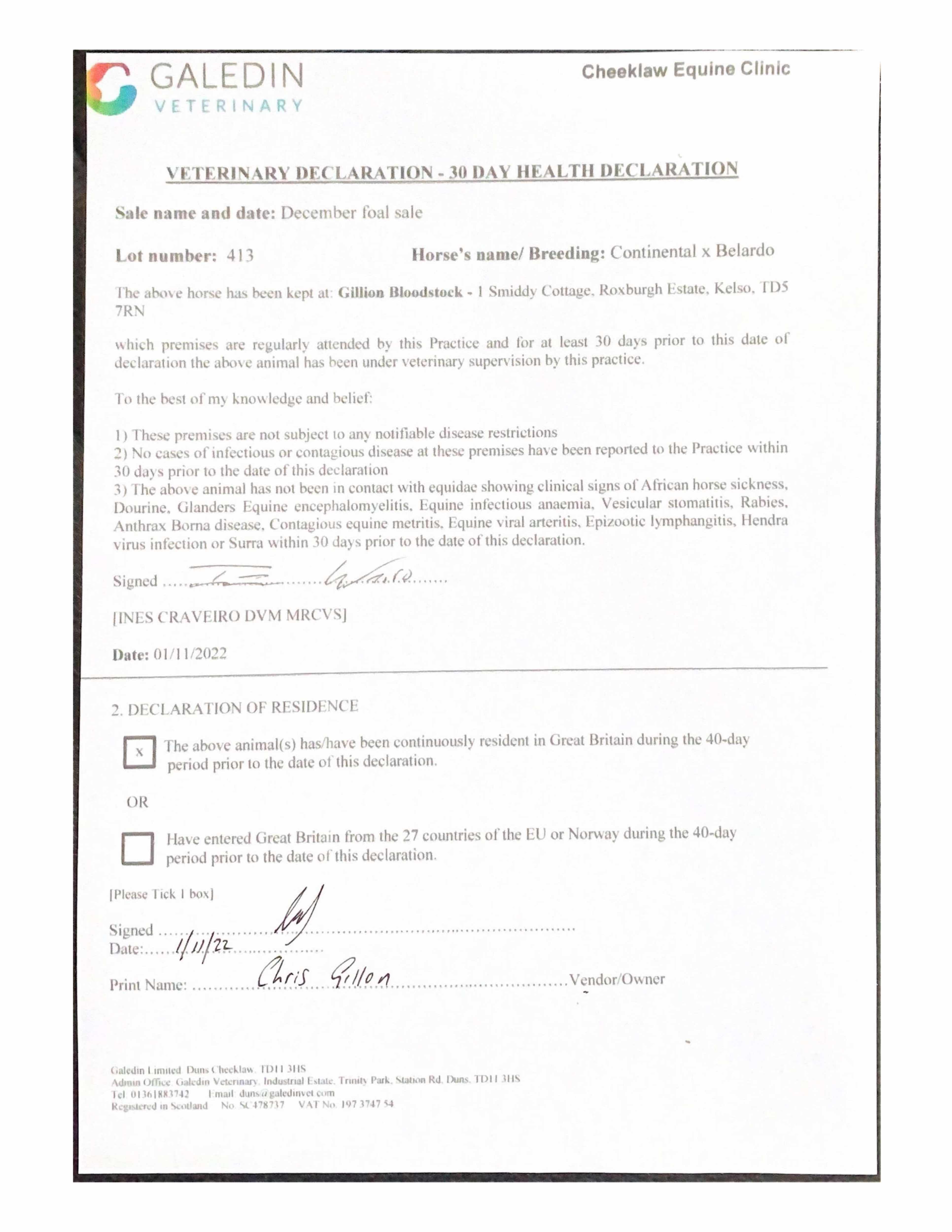 Online Sale - 23rd November 2023 lot 92 F. by Cable Bay (IRE) 2023, Collington Racing Ltd=>Lot Not Sold 900 gns