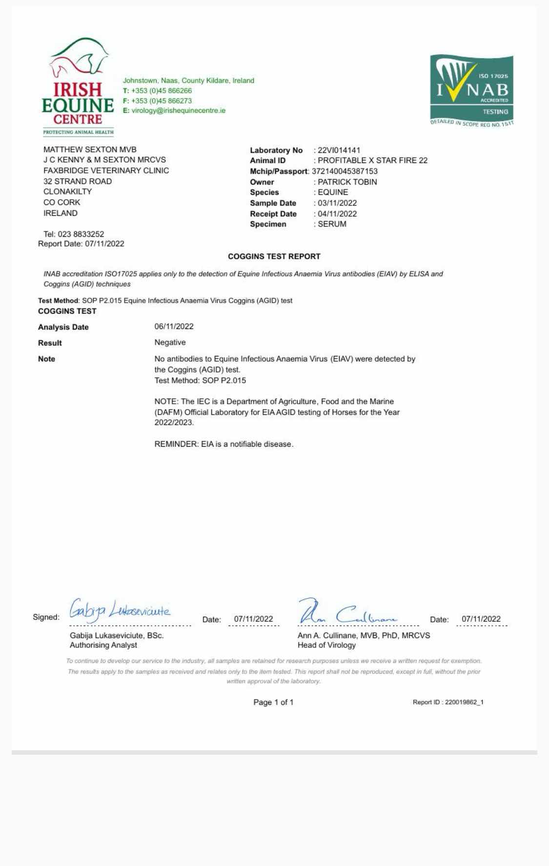 Consignor: Yellowford Farm, Ireland