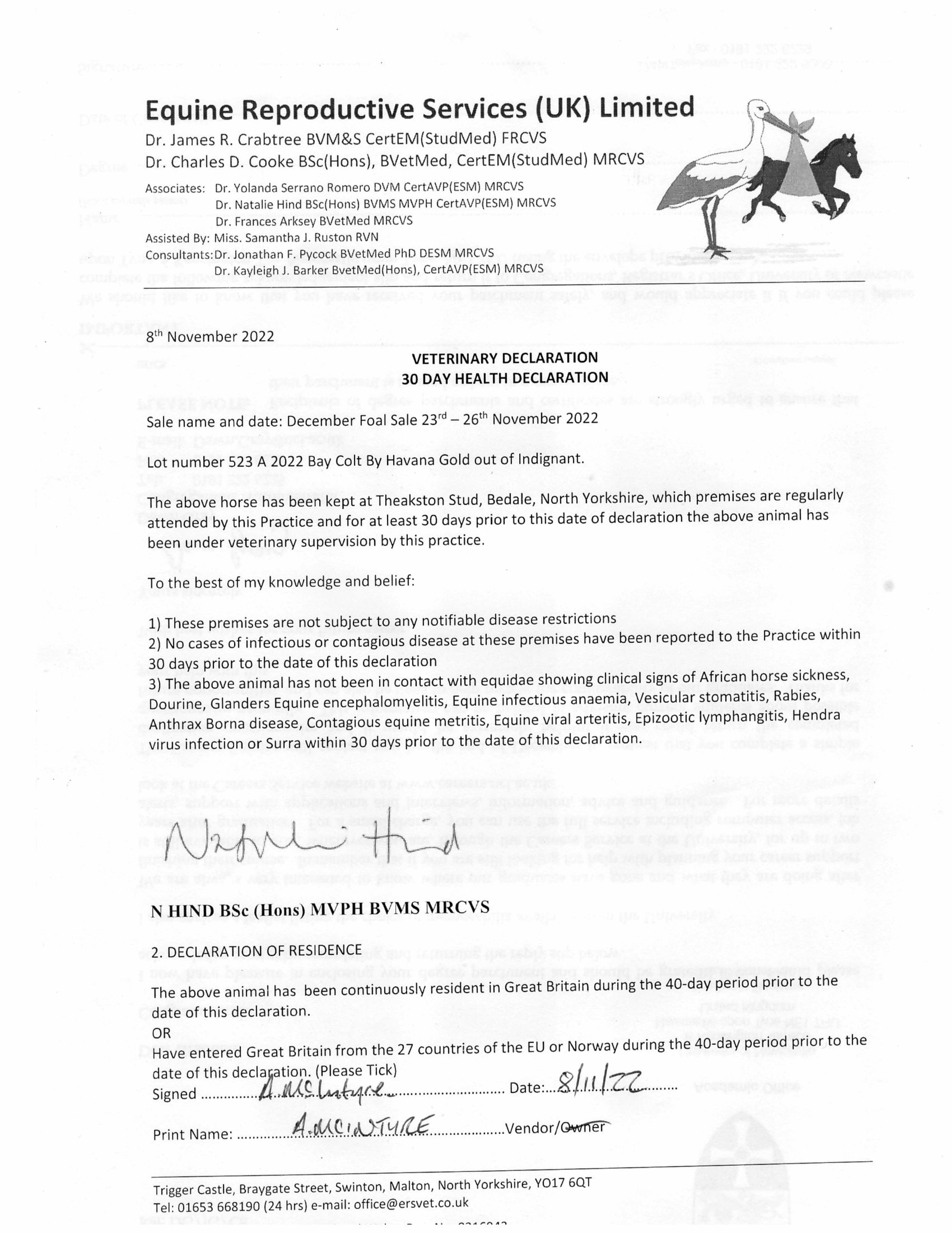 December Foal Sale 2025 lot 538 F. by Havana Grey (GB) 2025, Theakston Stud=>Vendor 32,000 gns