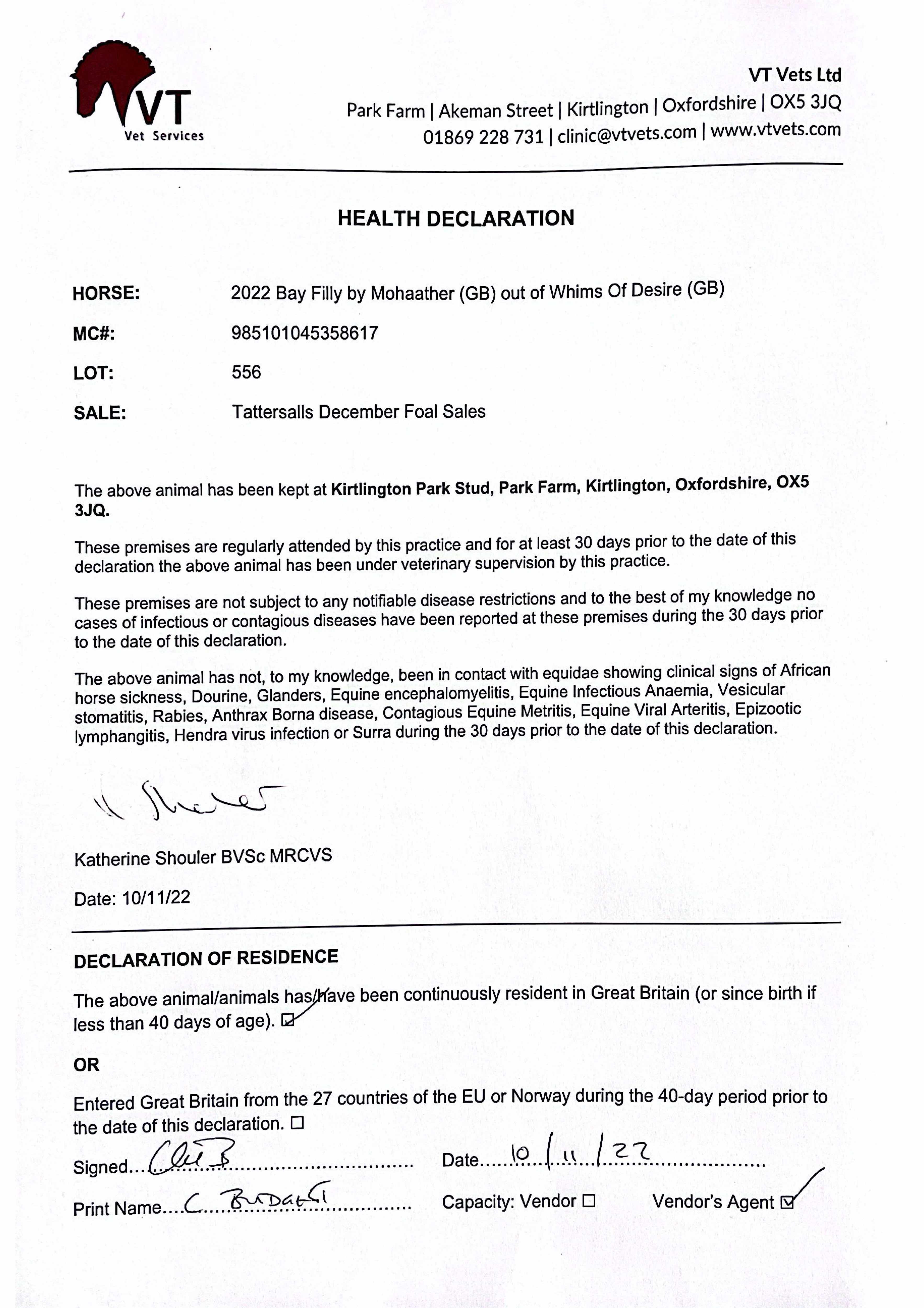 Consignor: Kirtlington Park Stud