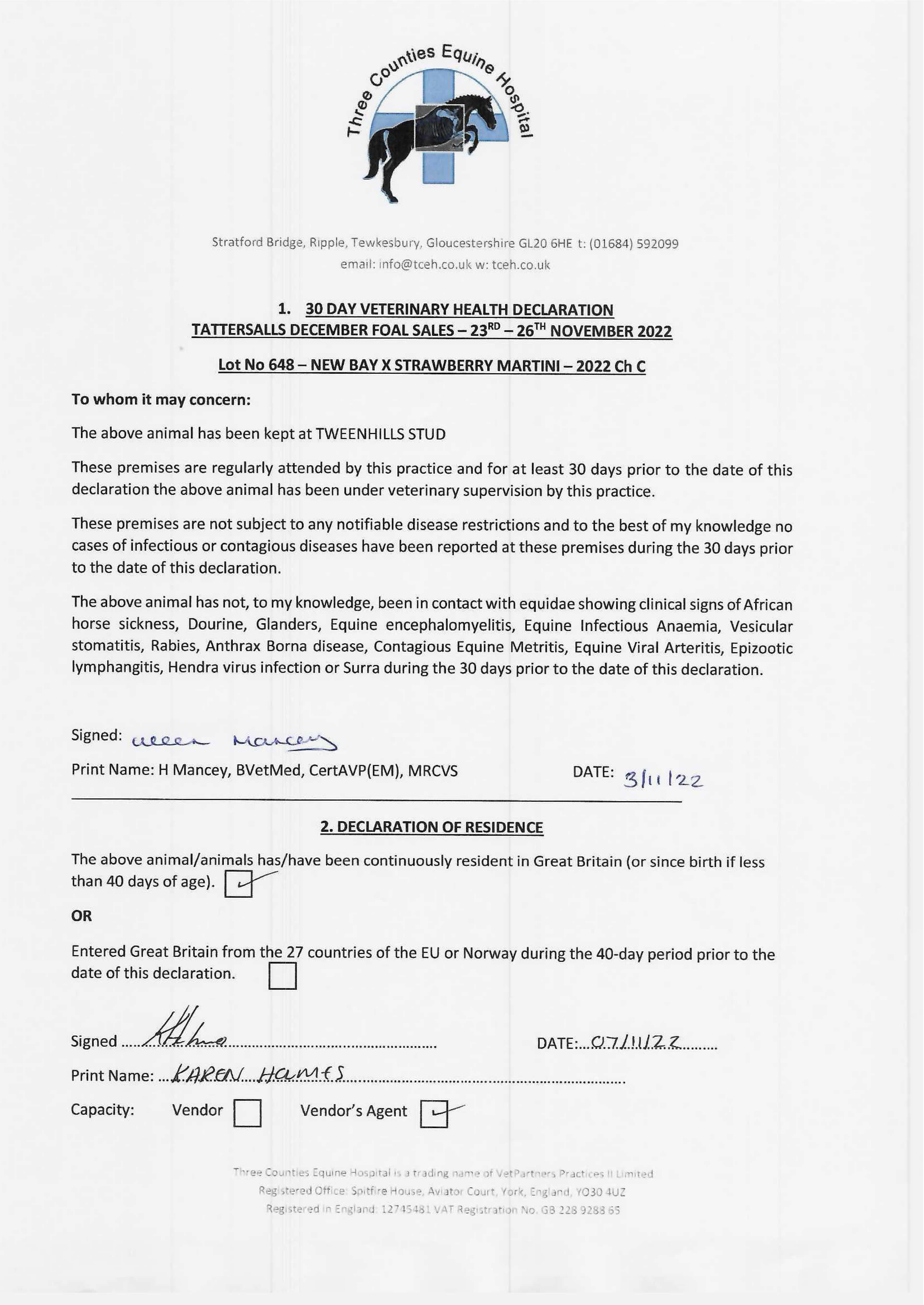 Consignor: Tweenhills Farm & Stud