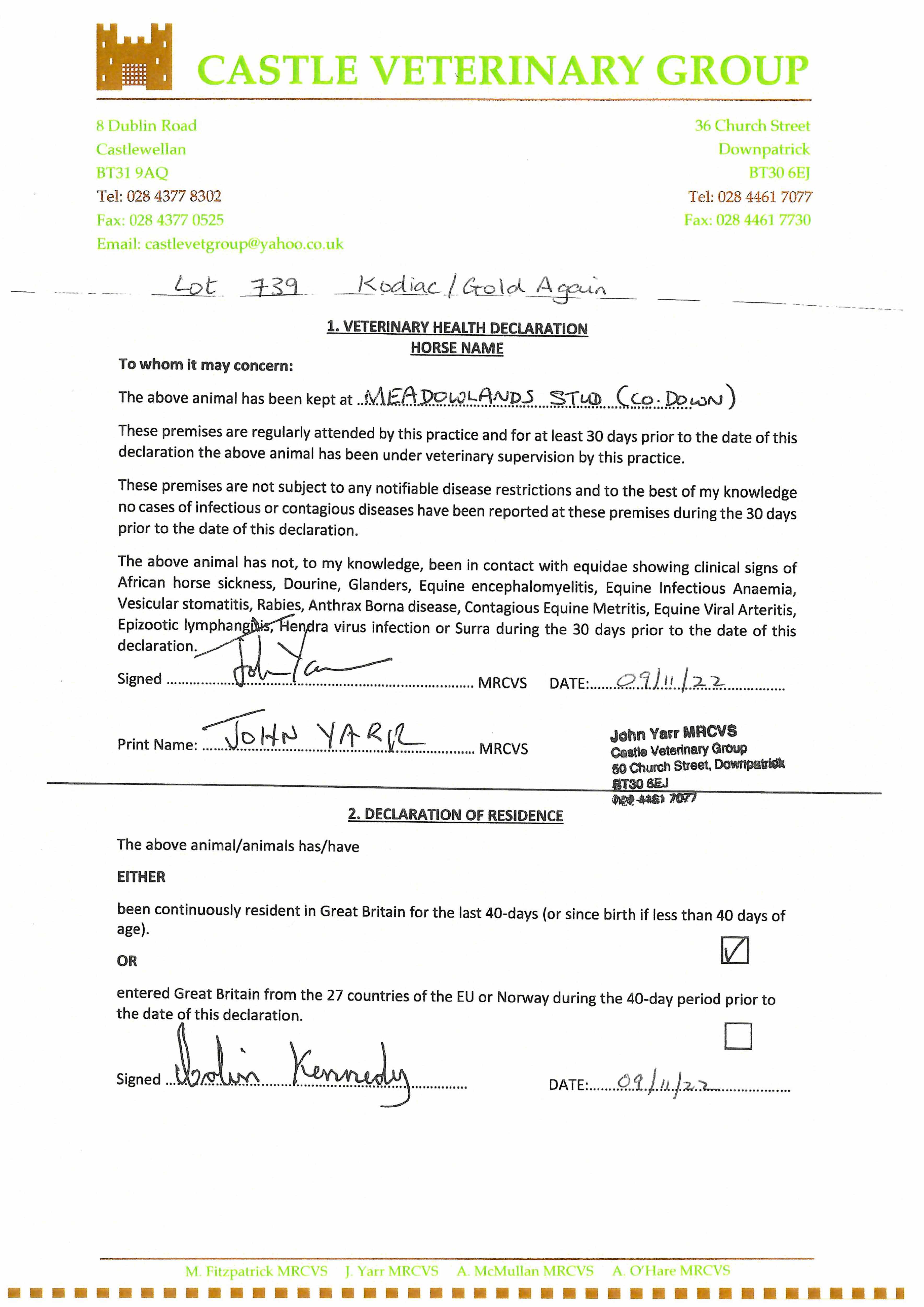 December Foal Sale 2011 lot 705 F. by Verglas (IRE) 2011, Meadowlands Stud, Co. Down=>Lot Not Sold