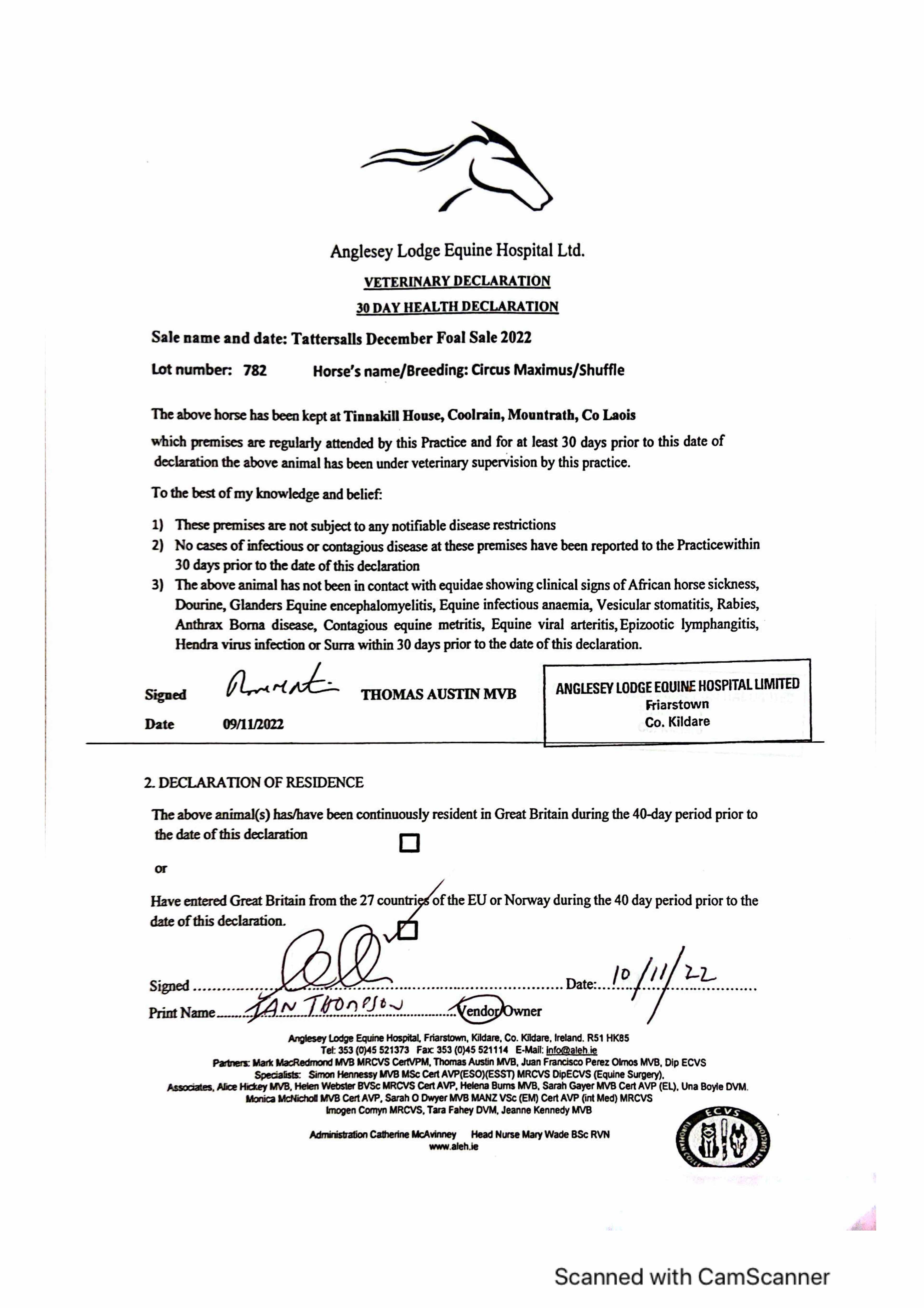 Consignor: Tinnakill House, Ireland