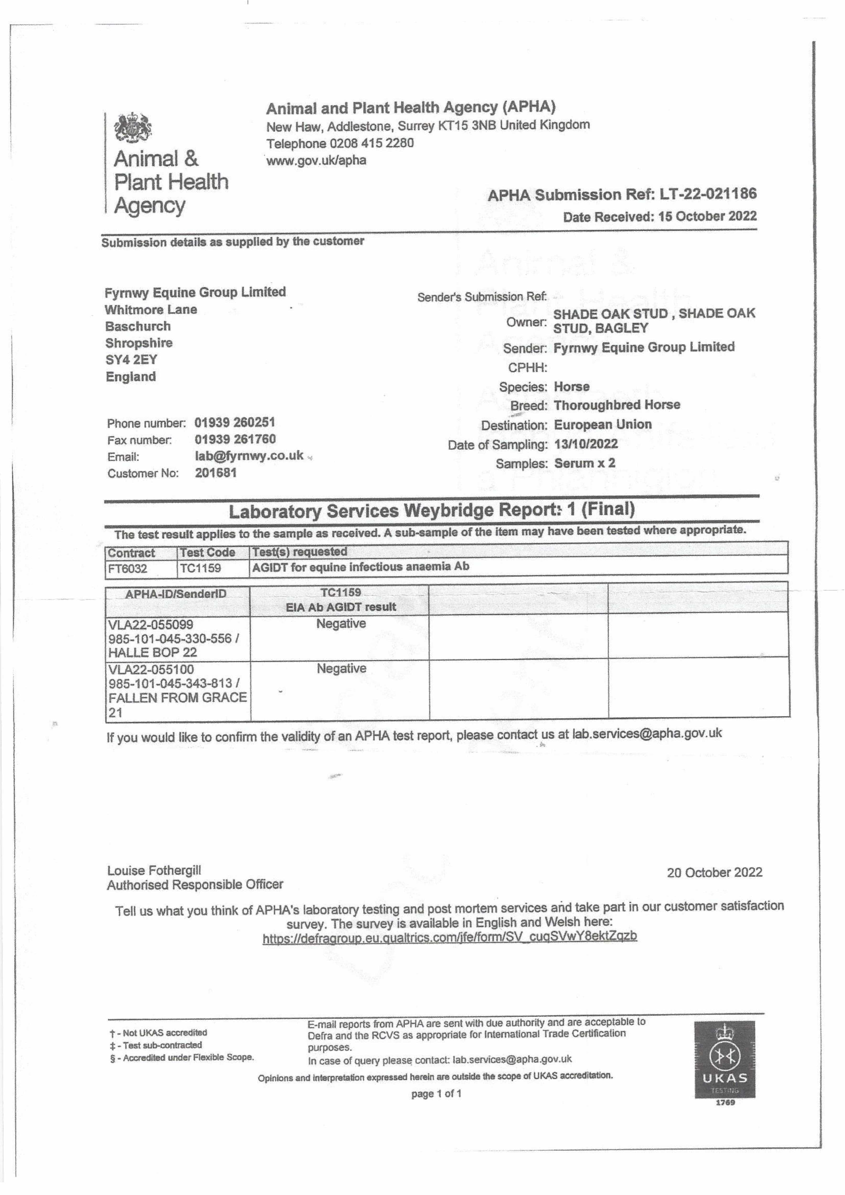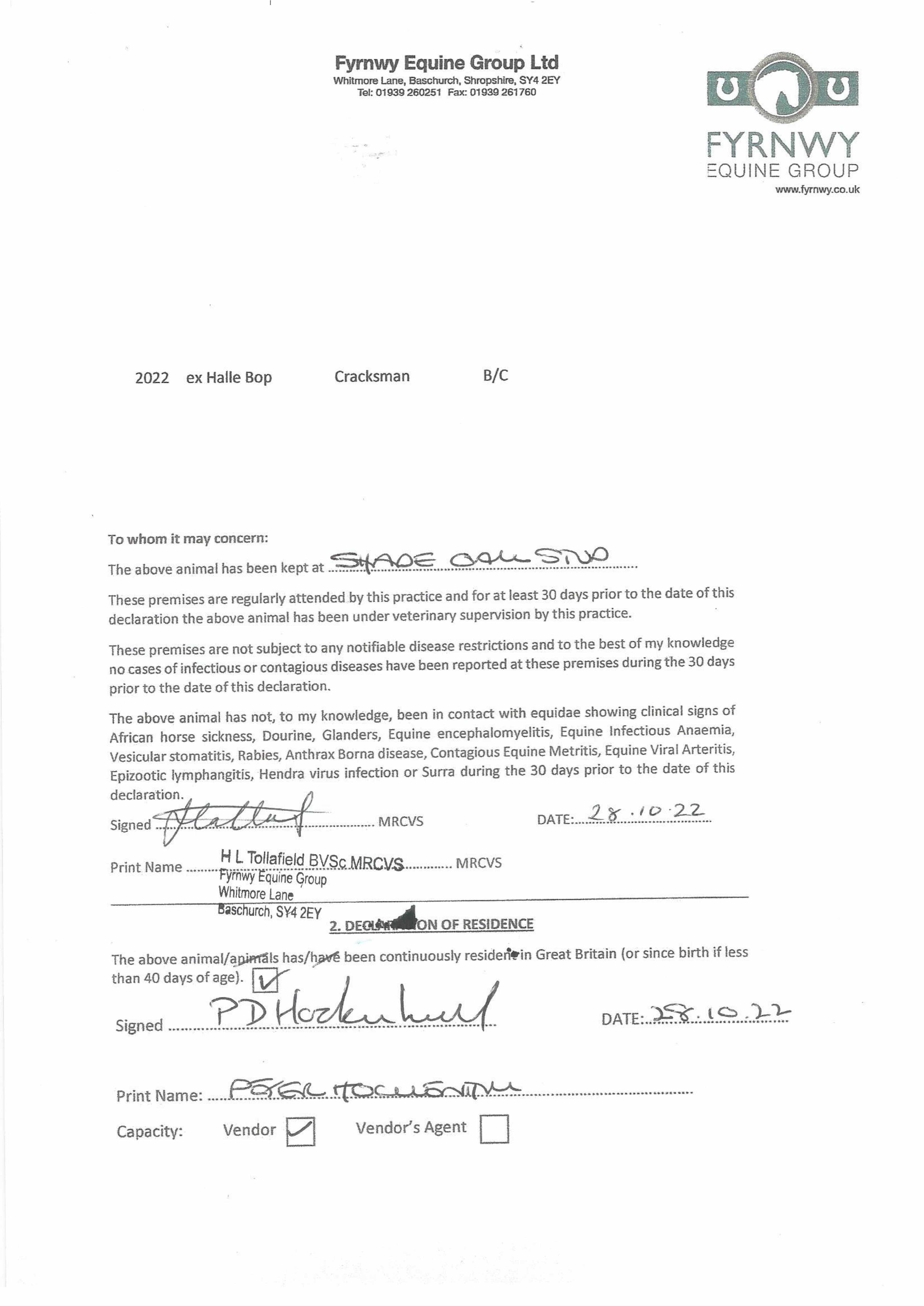 Online Sale - 21st November 2024 lot 134 F. by Logician (GB) 2023, Shade Oak Stud=>Lot Not Sold 2,200 gns