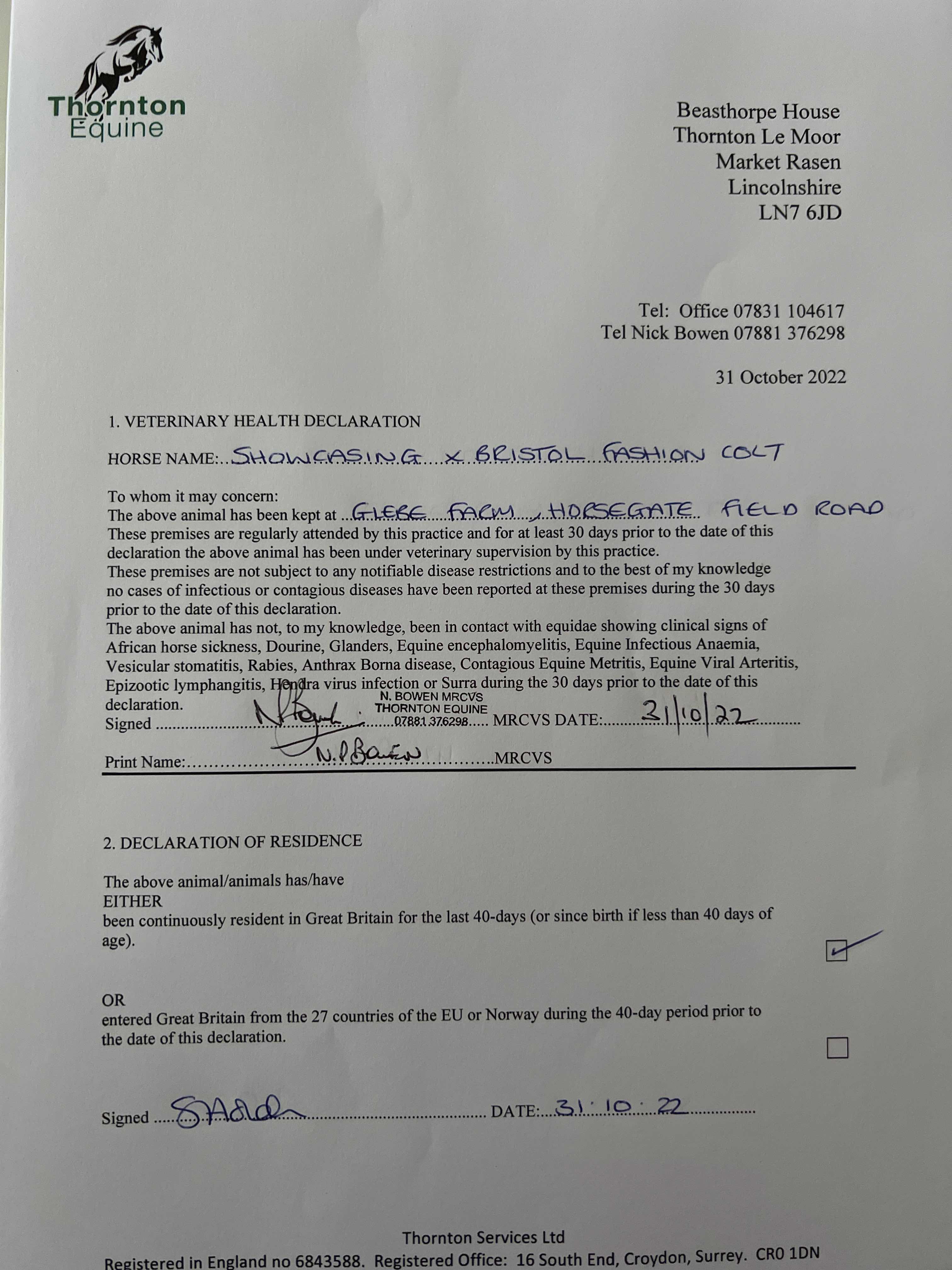 Consignor: Glebe Farm Stables