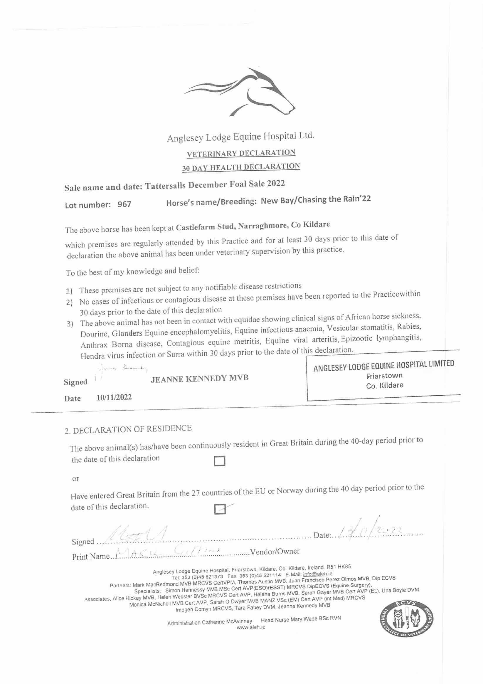 Consignor: Castlefarm Stud, Ireland (Agent)