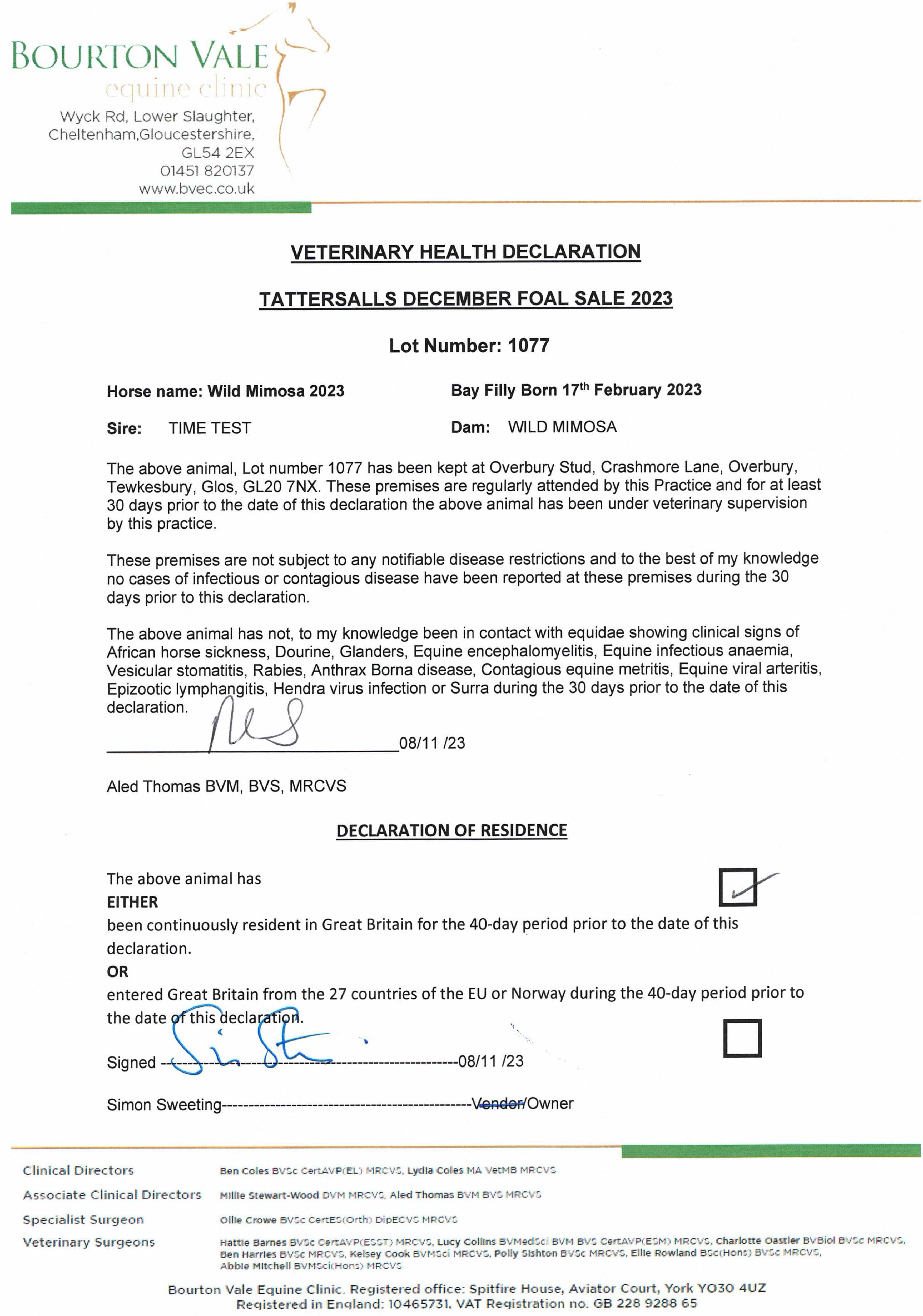 Consignor: Overbury Stud