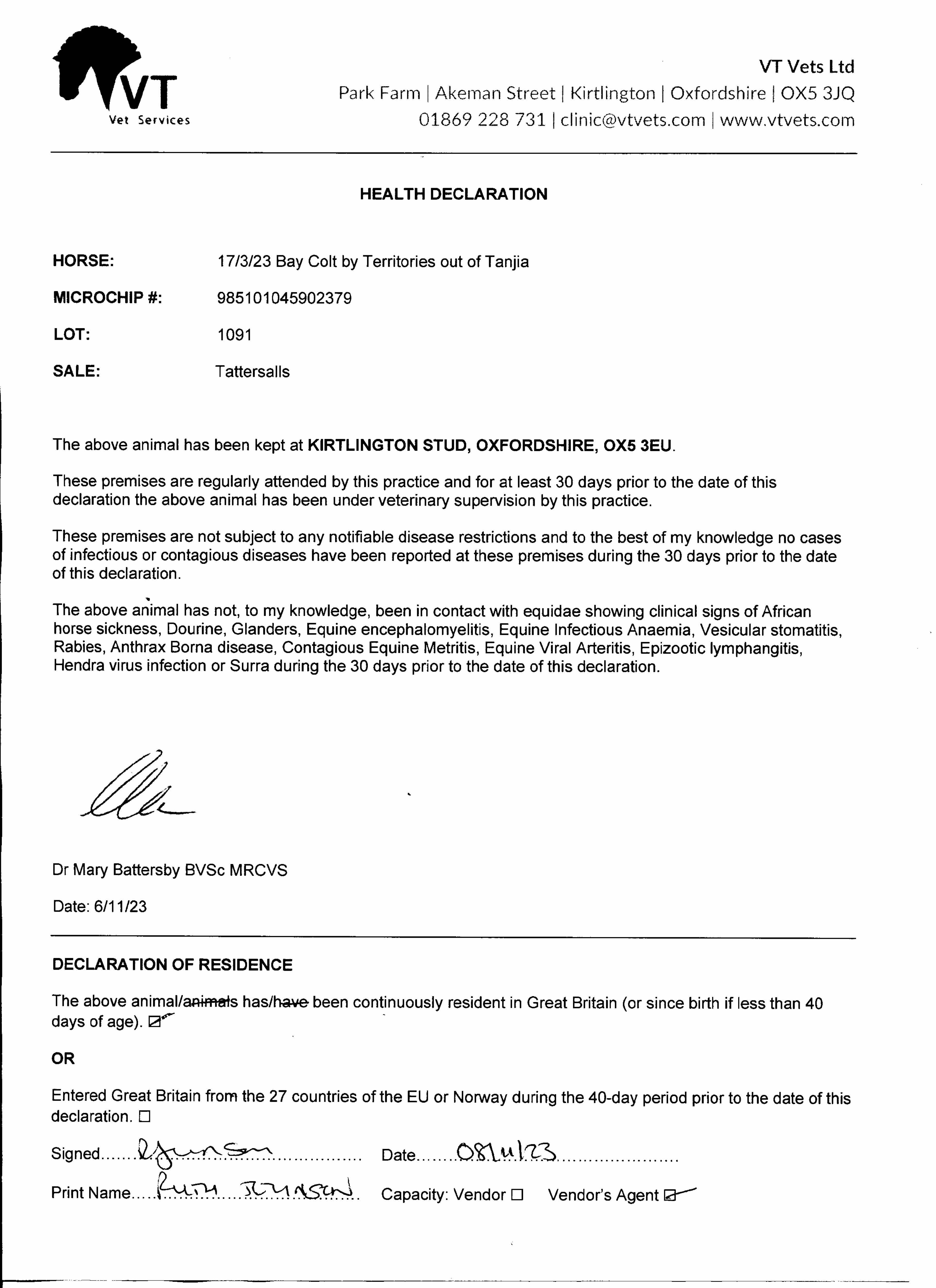 Consignor: Kirtlington Stud