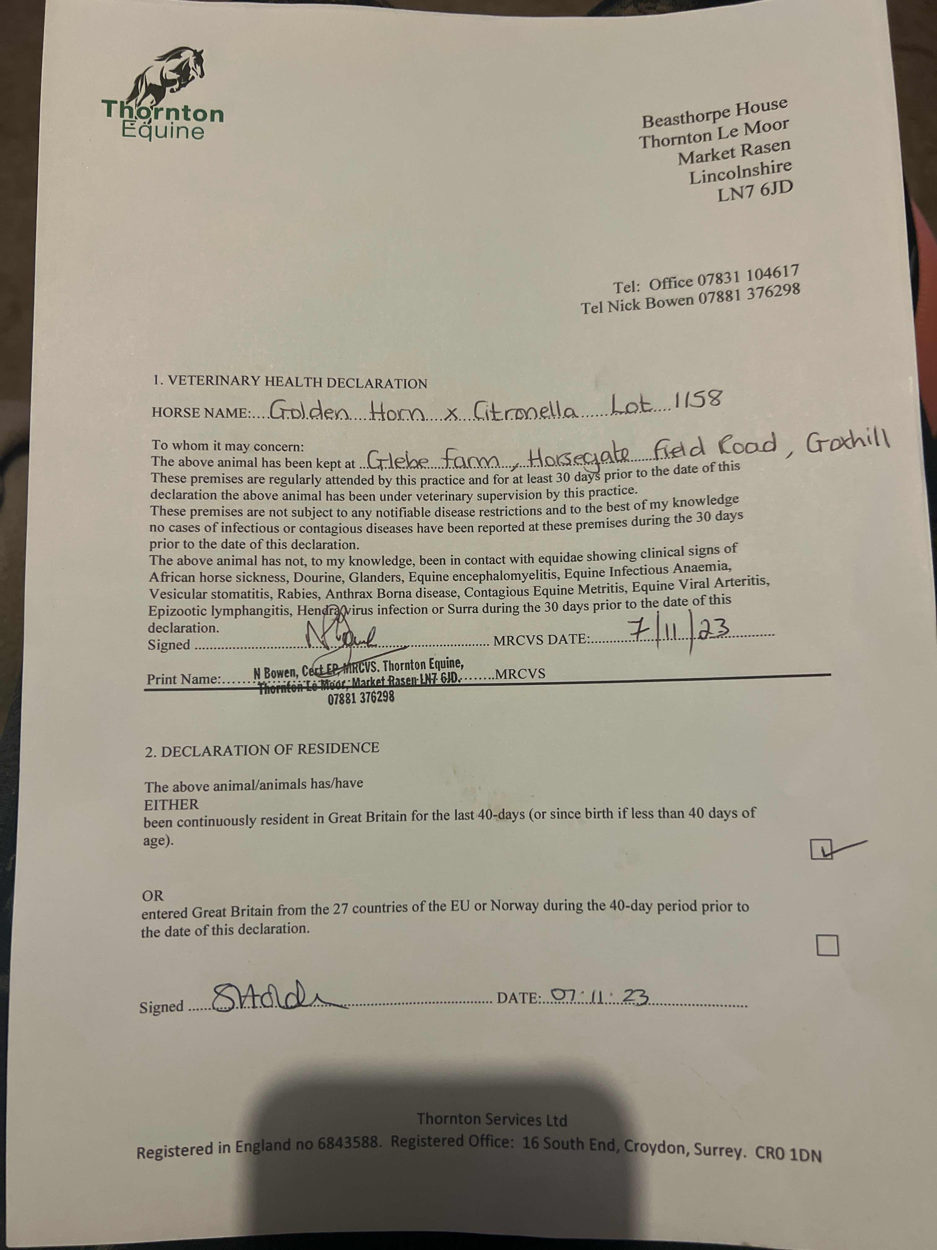 Consignor: Glebe Farm Stables