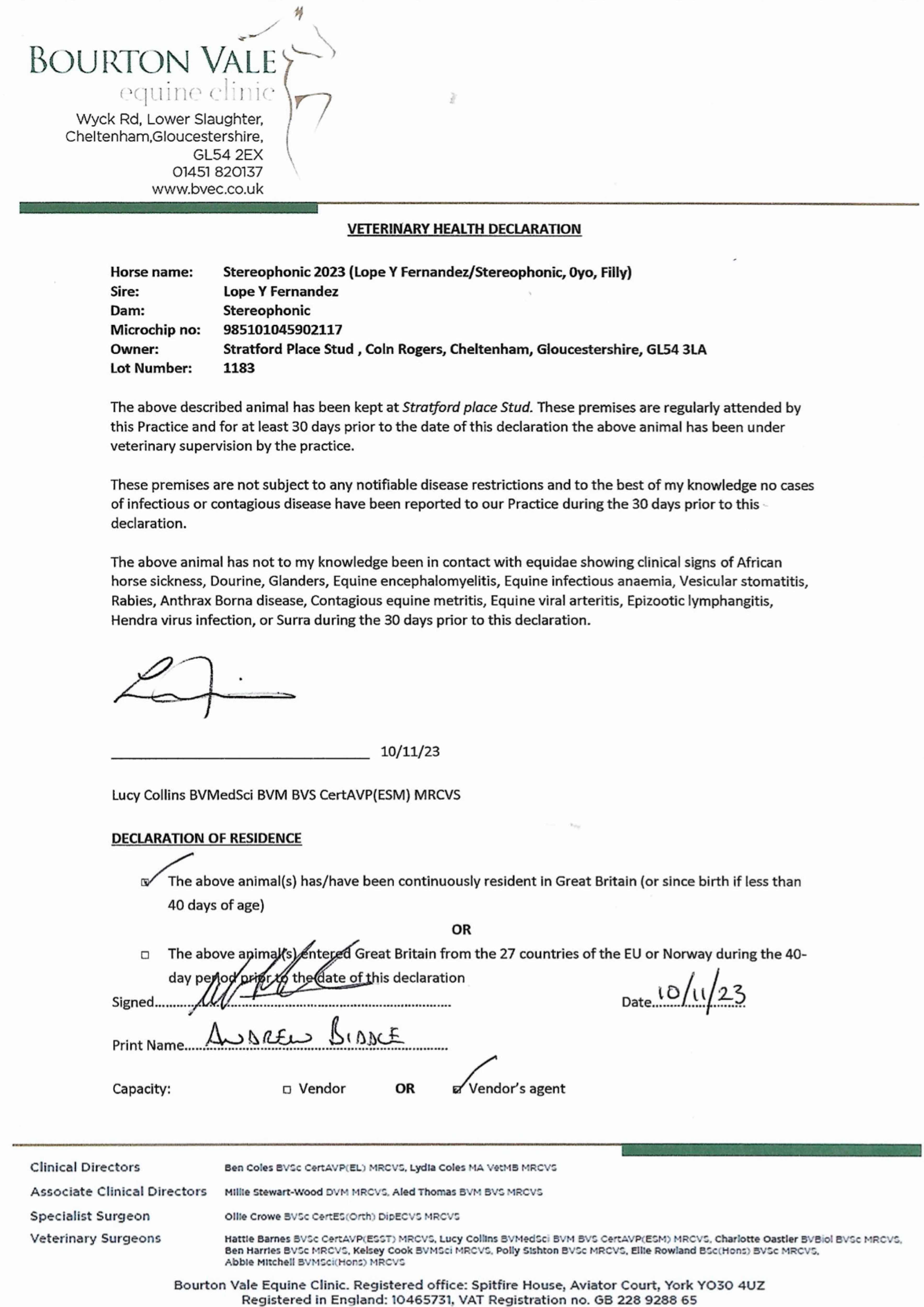 Consignor: Stratford Place Stud