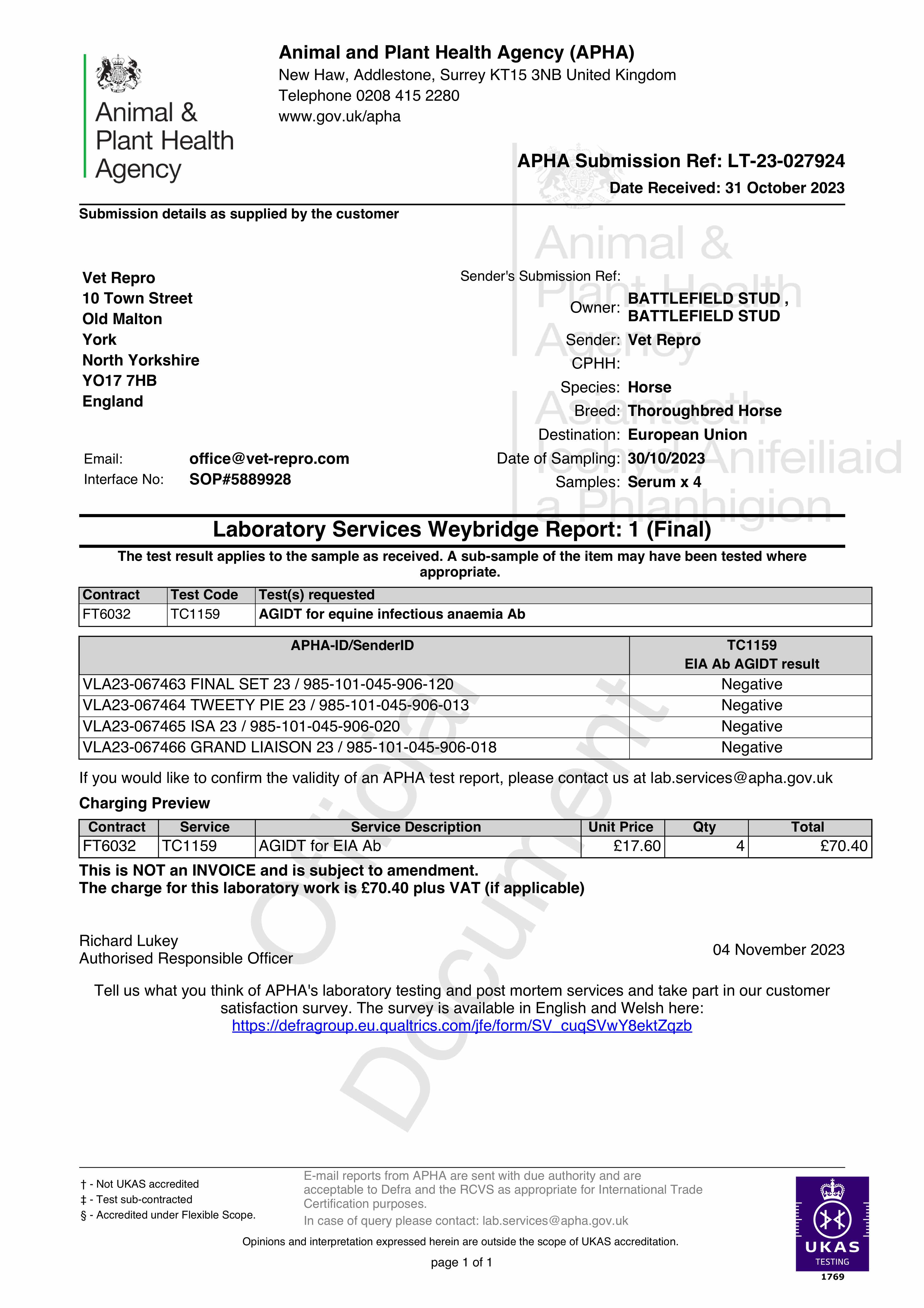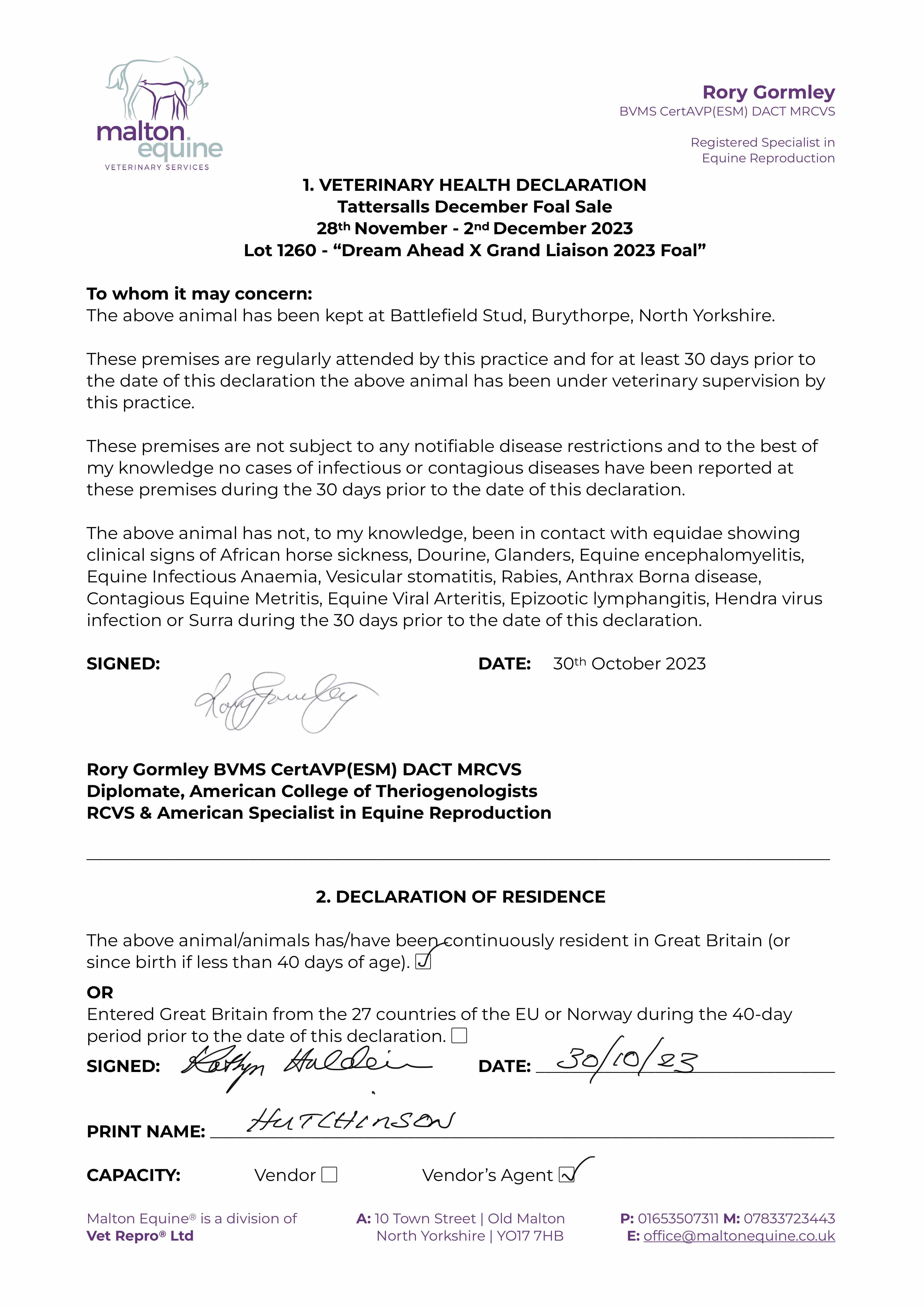 Consignor: Battlefield Stud