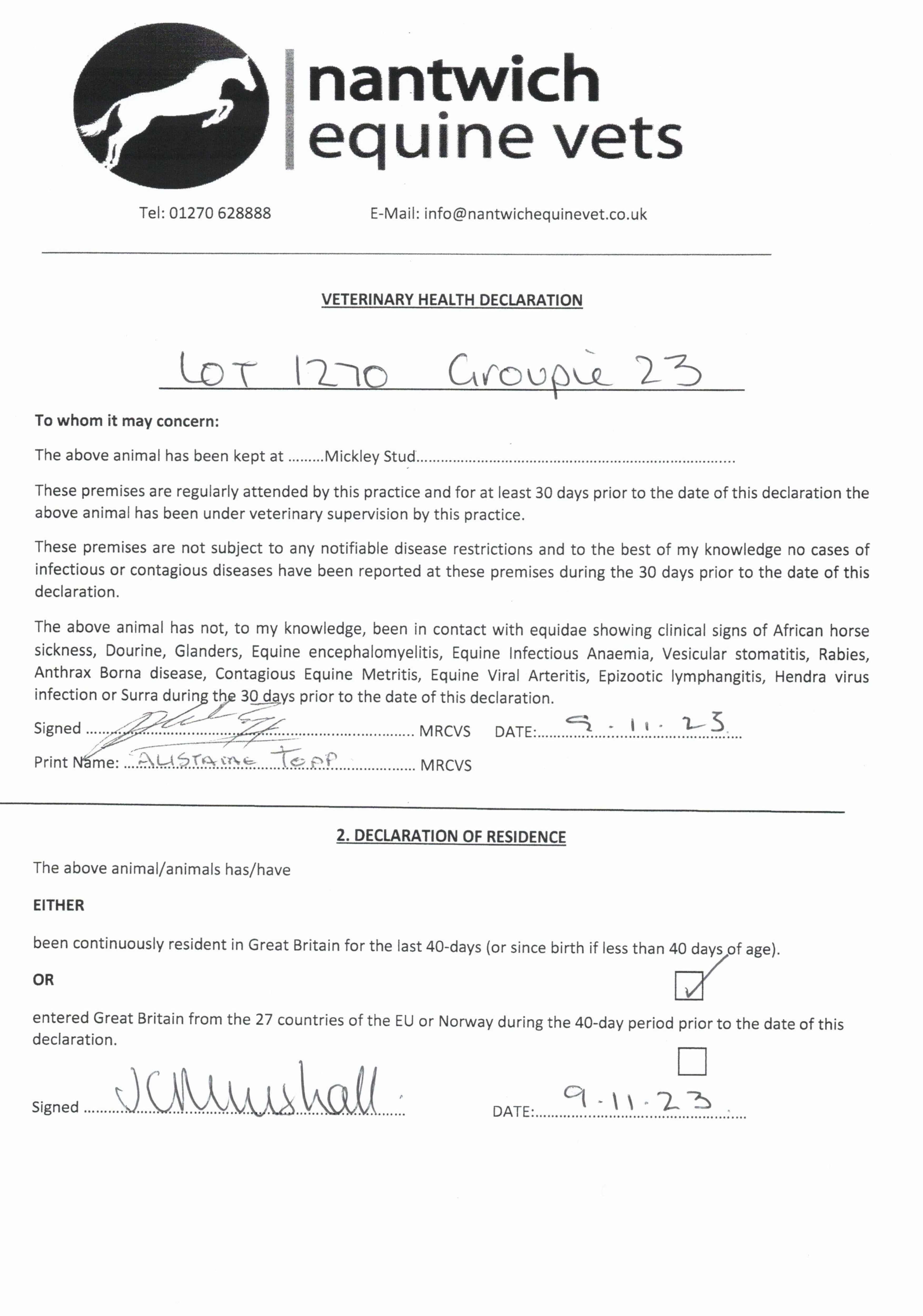 Consignor: Tennyson Farm & Stud