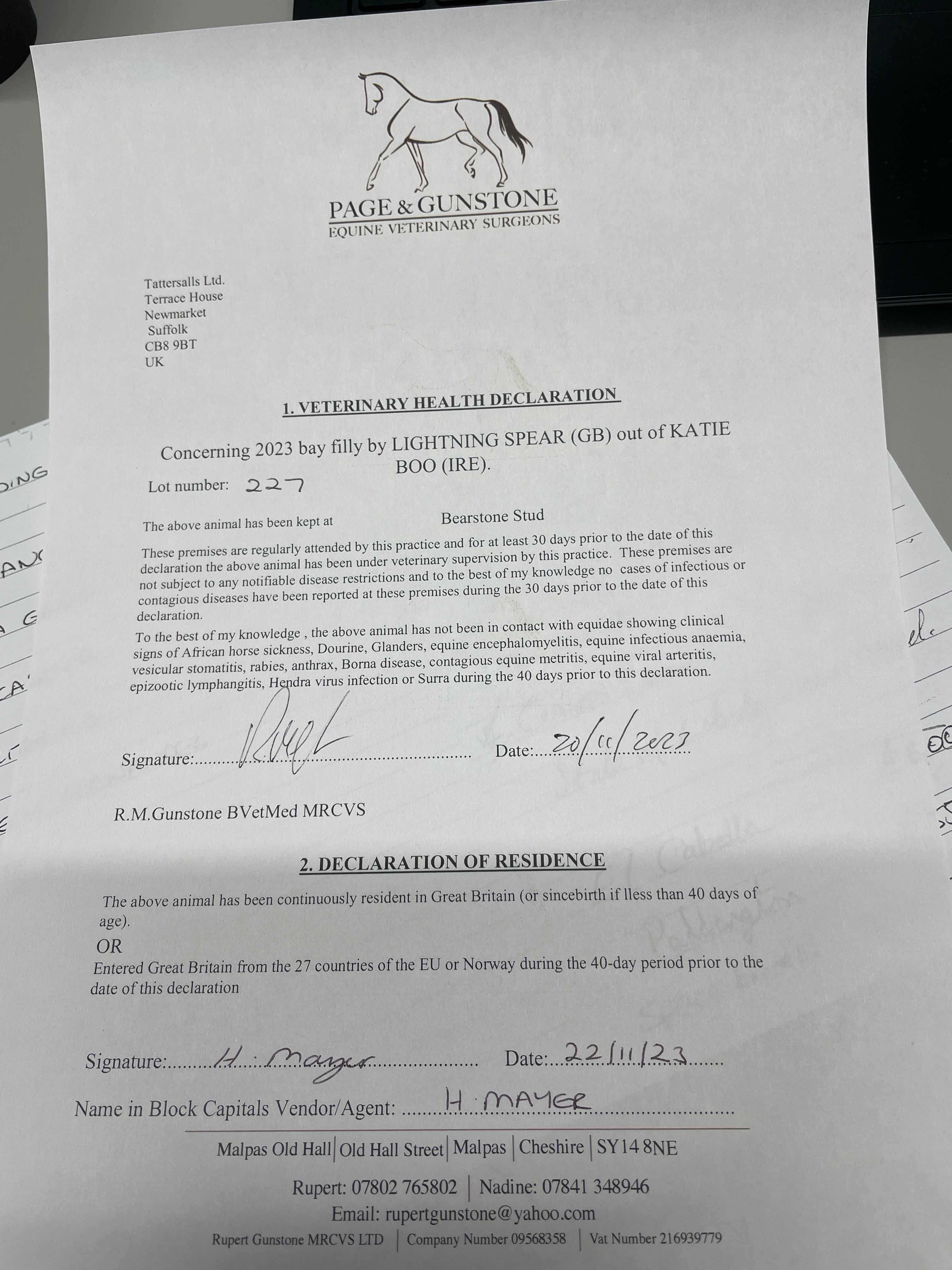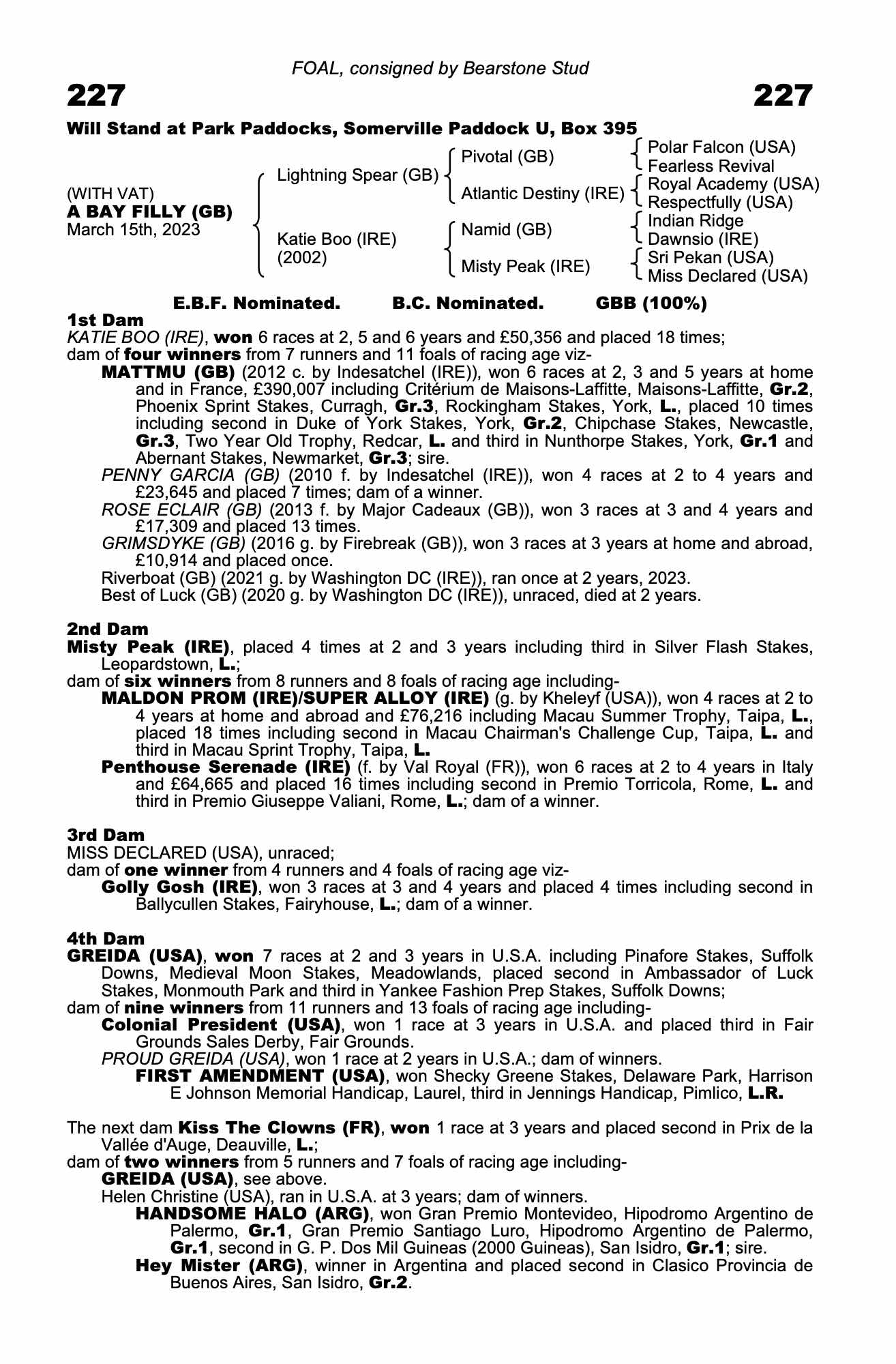 Consignor: Bearstone Stud
